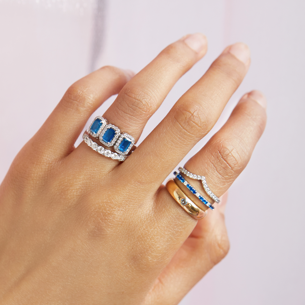Legen Sie Ihr Band einfach um den Mittelstein Ihres Rings oder kreieren Sie mit dem Chevron einen einzigartigen Stapel. Der Chevron ist aus massivem Platin gefertigt und enthält ca. 0,15cts Edelsteine oder Diamanten.
