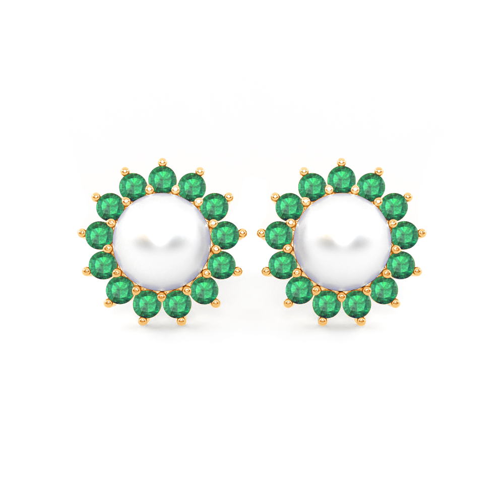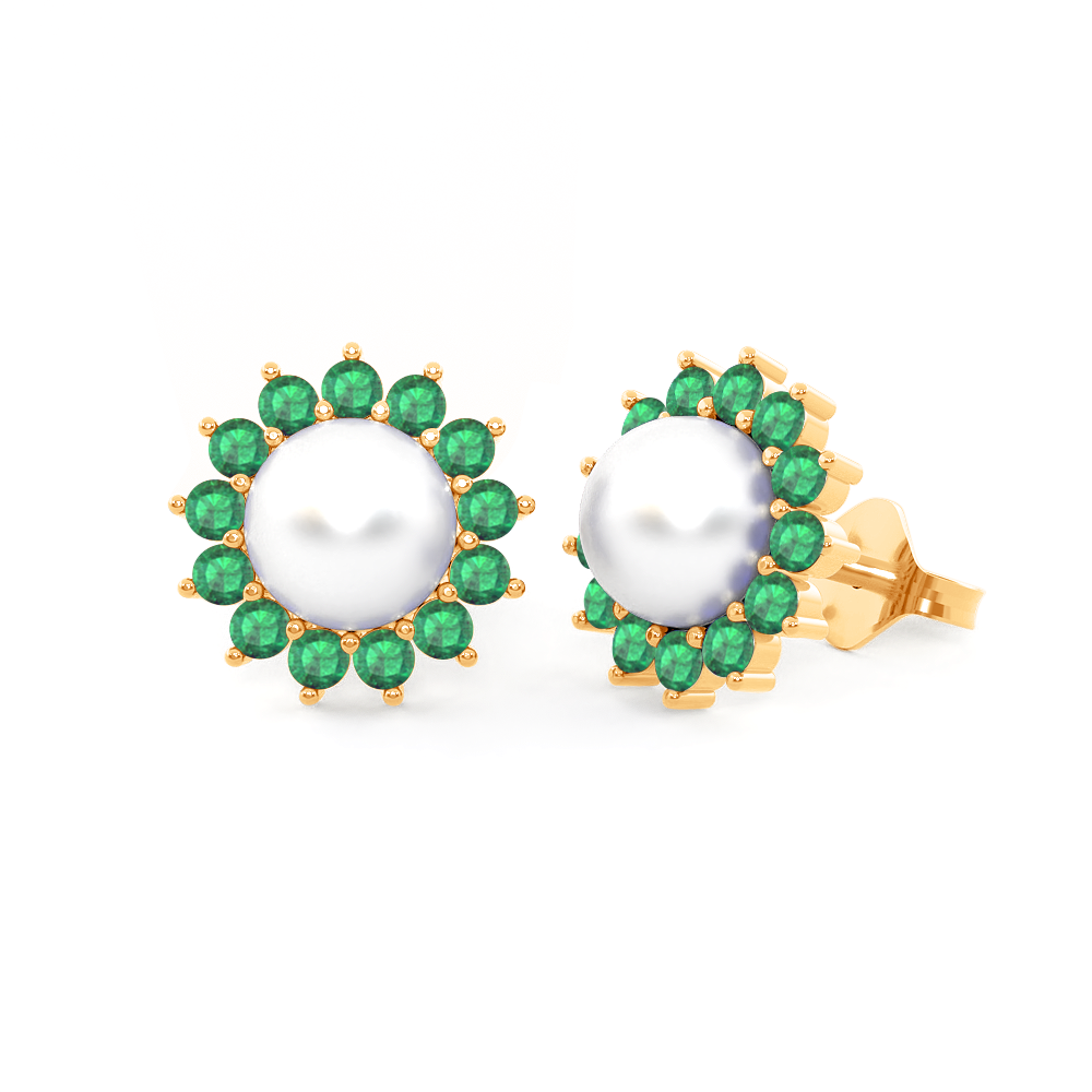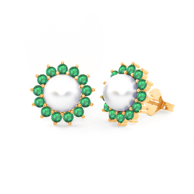 Classic Pearl and Emerald Studs 18K Yellow Gold