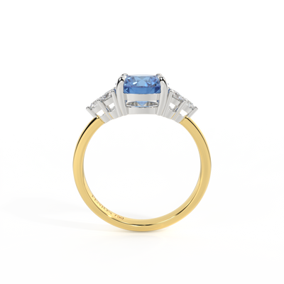 Trefoil Round Blue Sapphire 18K Yellow Gold Ring