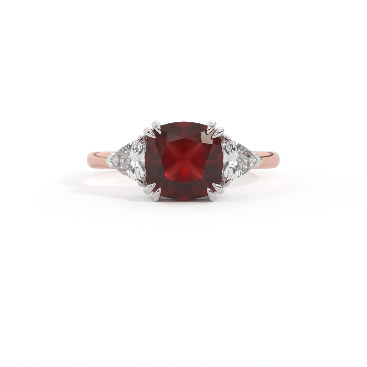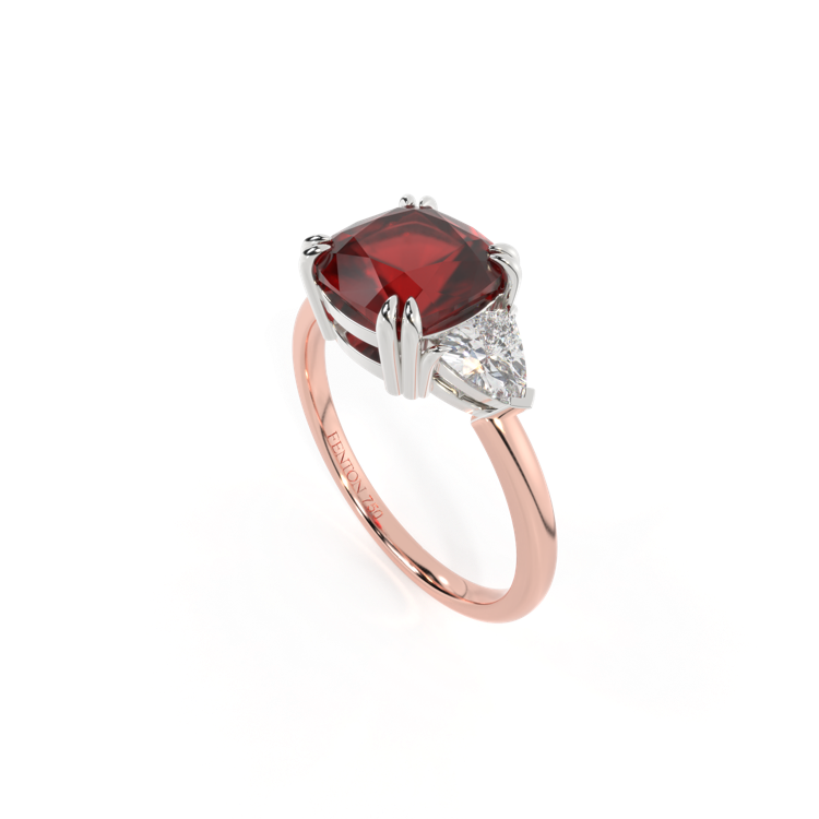 Trilogy Cushion Garnet 18K Rose Gold Ring