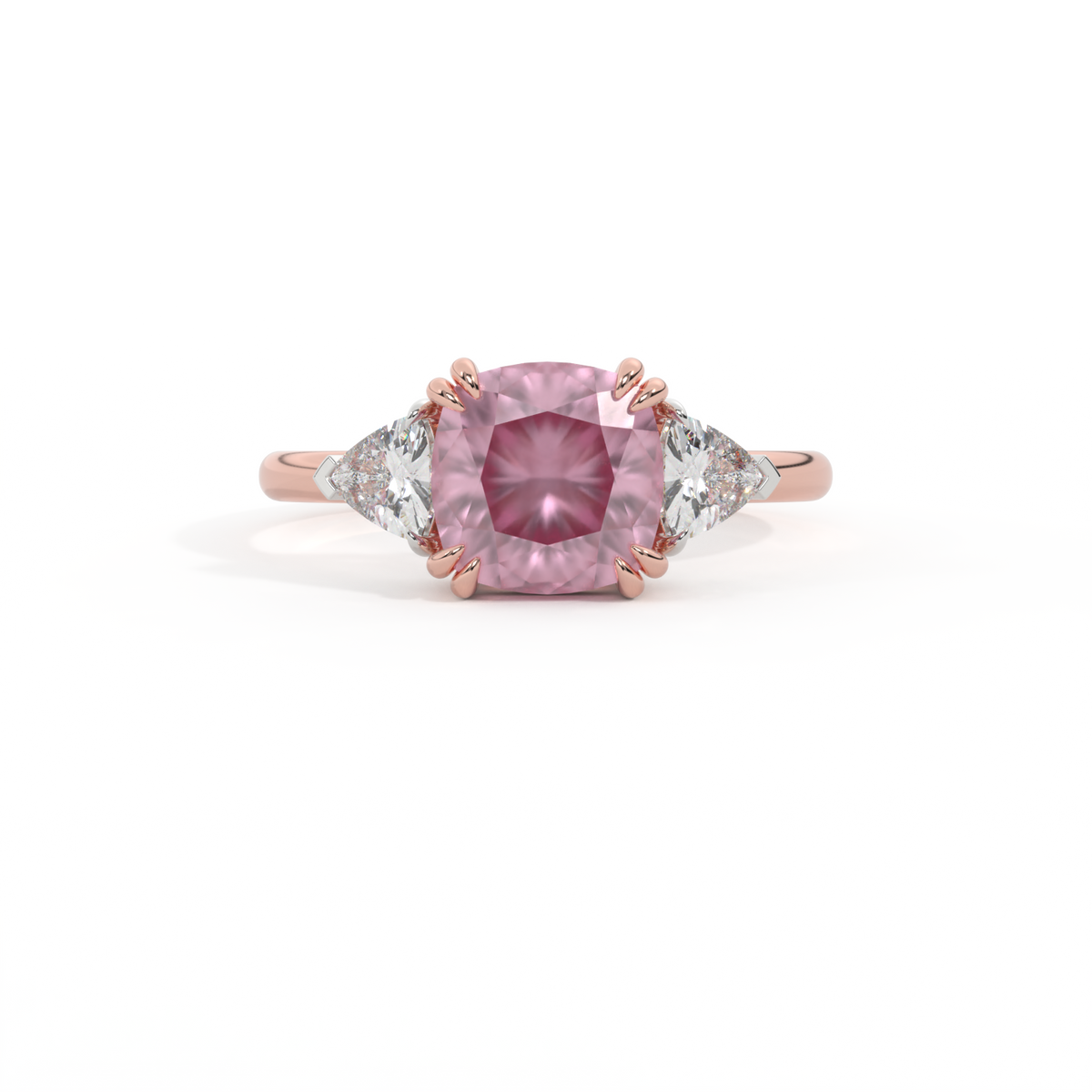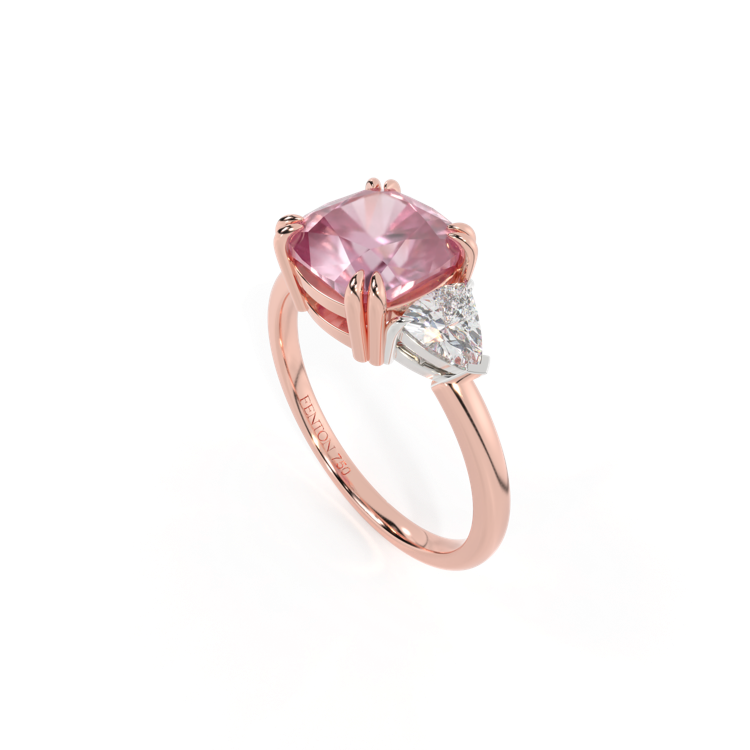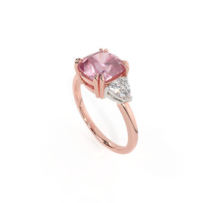 Trilogy Cushion Pink Sapphire 18K Rose Gold Ring
