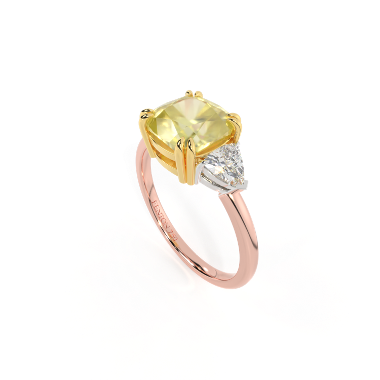 Trilogy Cushion Yellow Sapphire 18K Rose Gold Ring