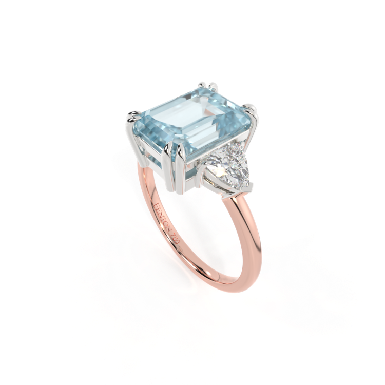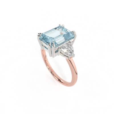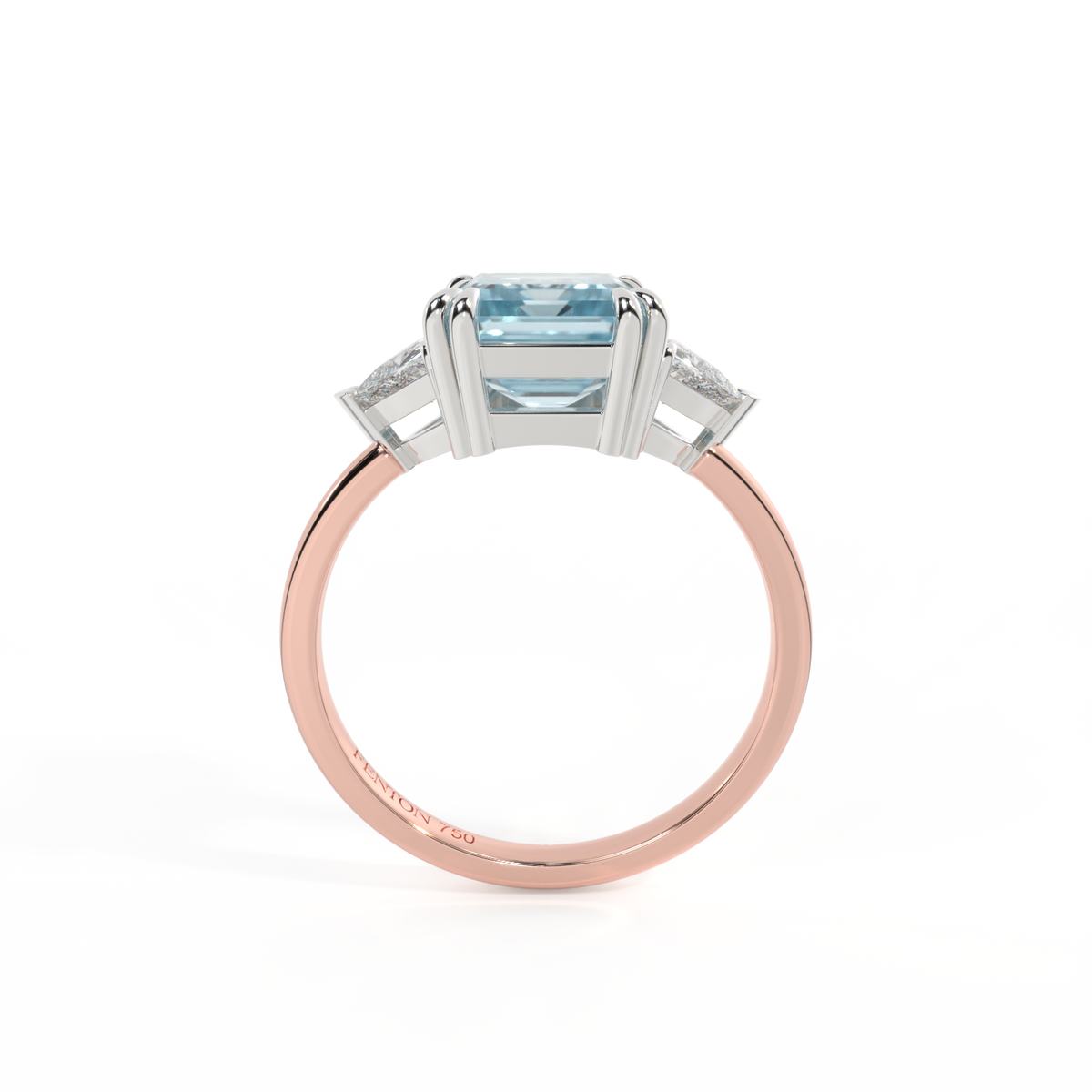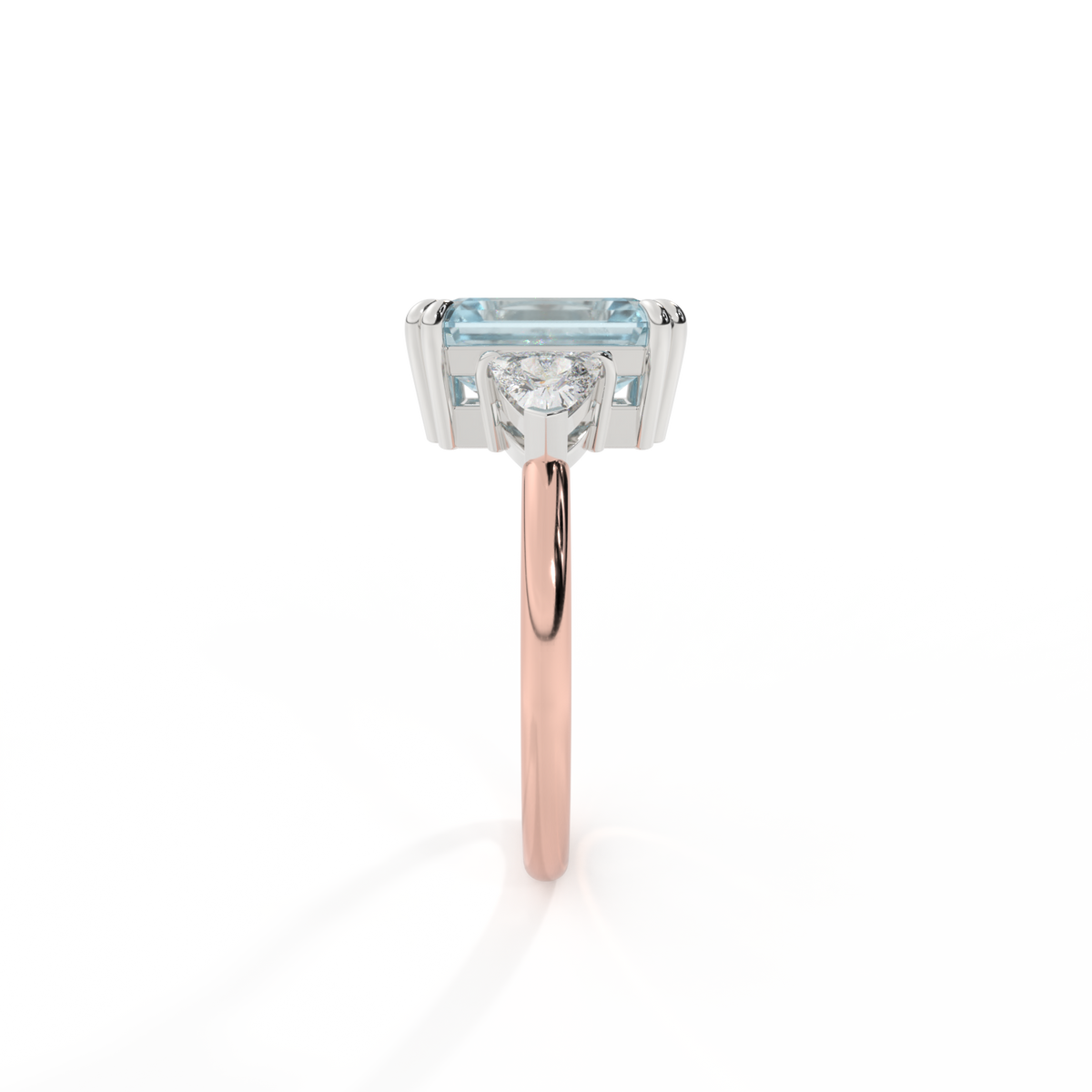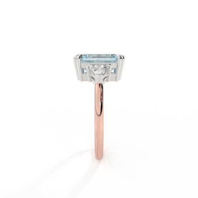 Trilogy Emerald Aquamarine 18K Rose Gold Ring