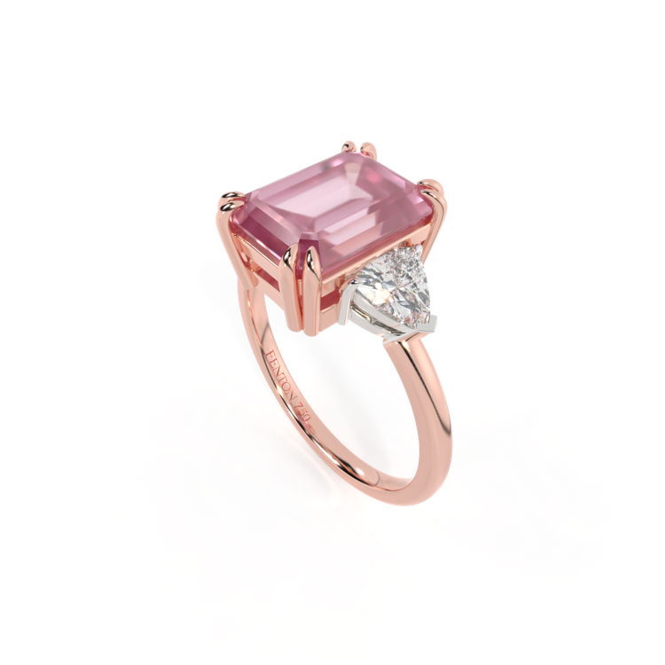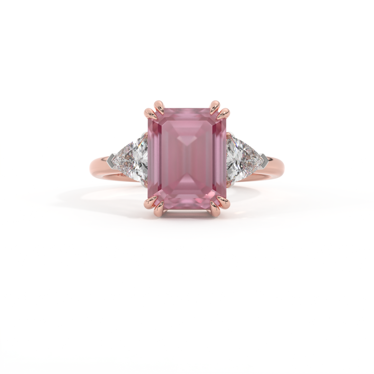 Trilogy Emerald Pink Sapphire 18K Rose Gold Ring