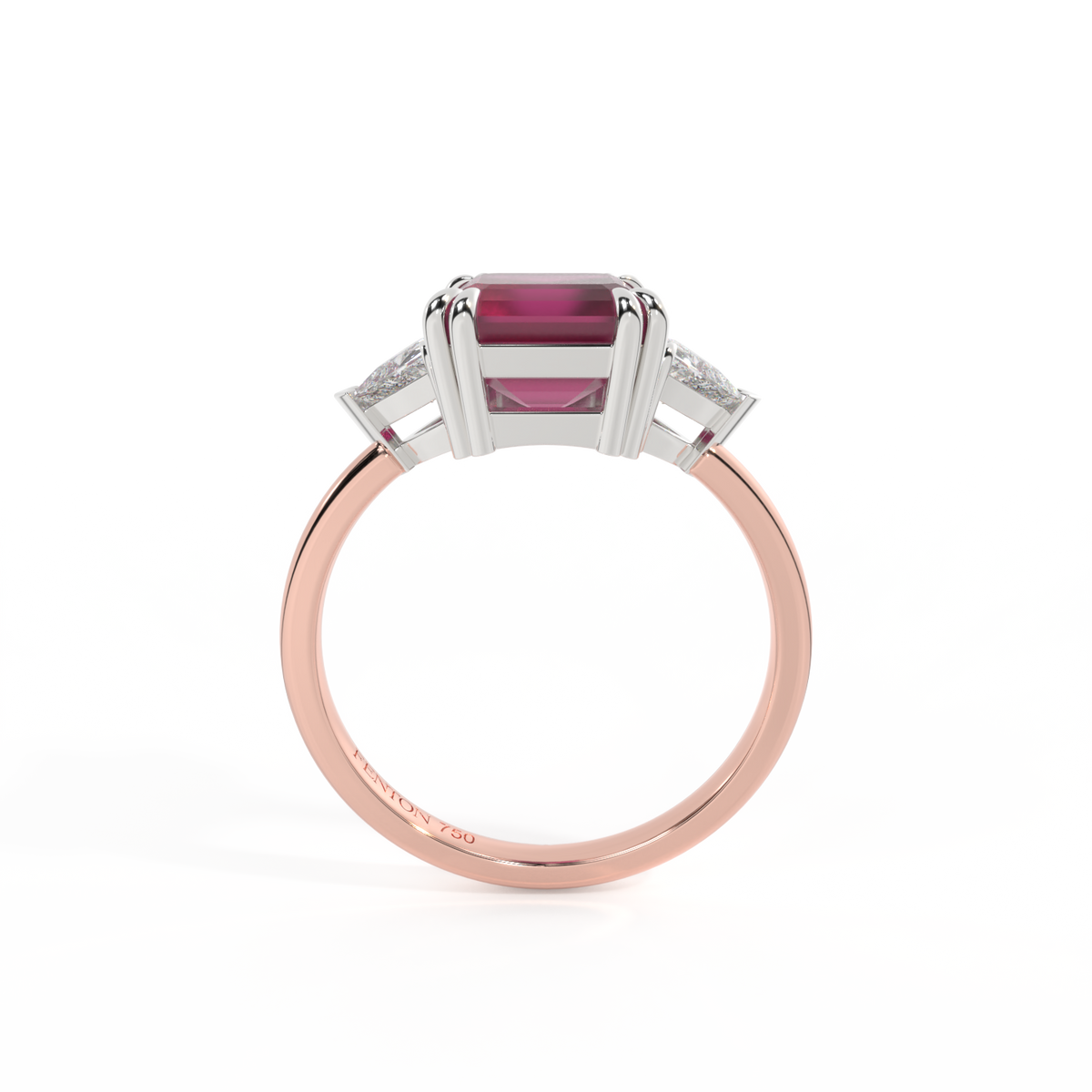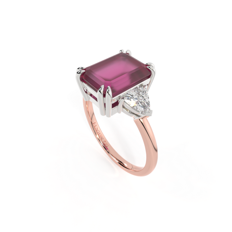 Alle unsere Ringe sind in blauem Saphir, Rubin, Smaragd, rosa Saphir, gelbem Saphir, Granat und Aquamarin erhältlich. Wir bieten drei Metalle an: 18 Karat Roségold, 18 Karat Gelbgold und Platin. Die Mittelsteine sind in vier Schliffen erhältlich: rund, kissenförmig, oval und smaragdgrün sowie in fünf Größen für jeden Schliff und jedes Modell.