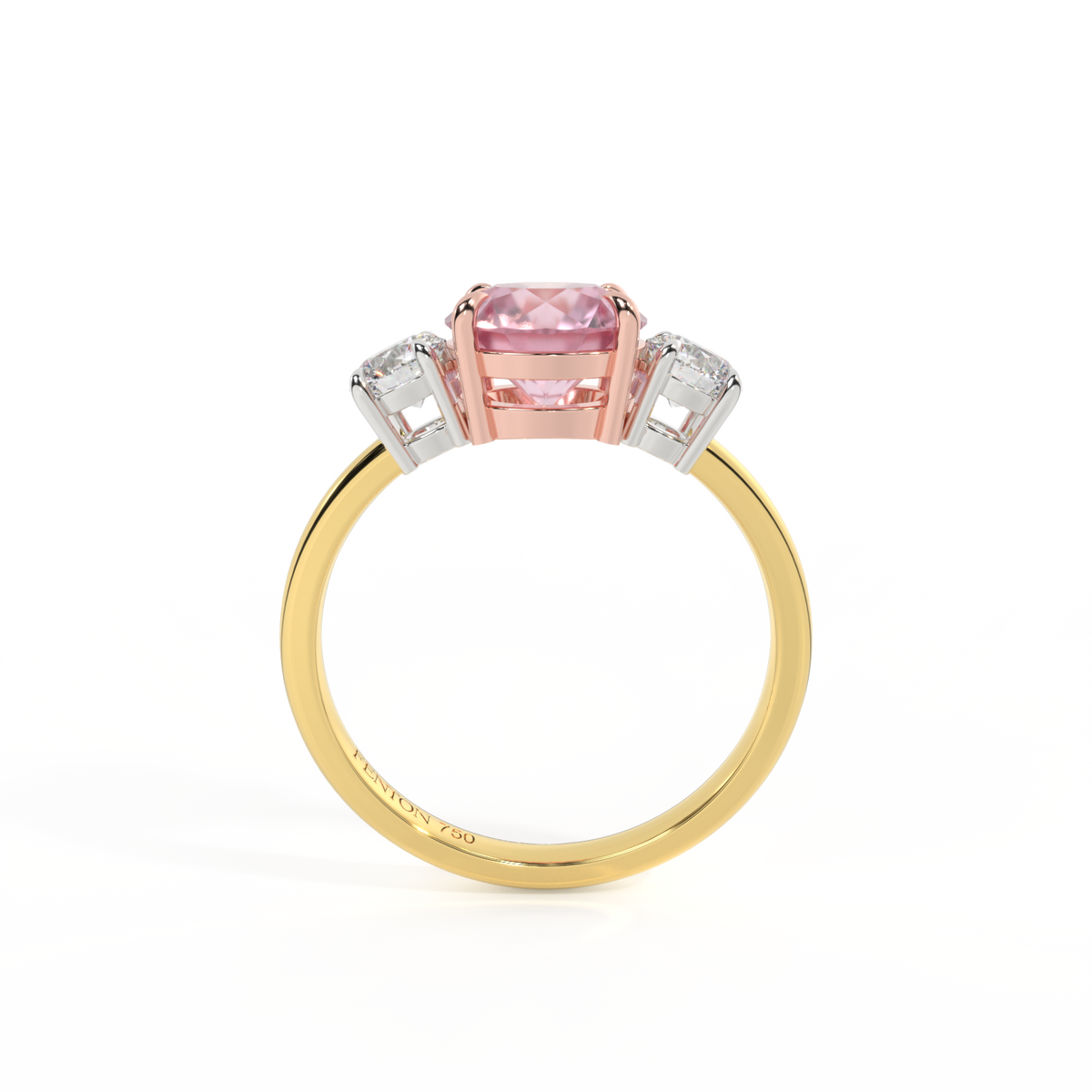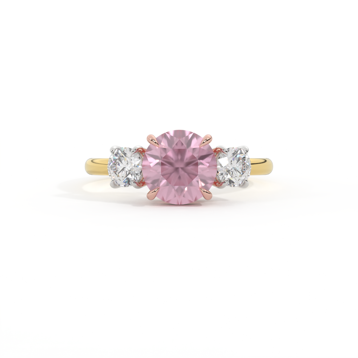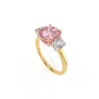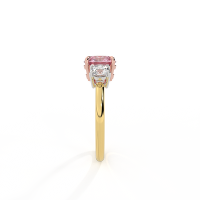 Trilogy Round Pink Sapphire 18K Yellow Gold Ring