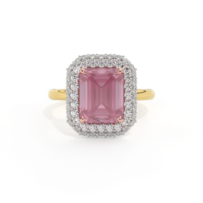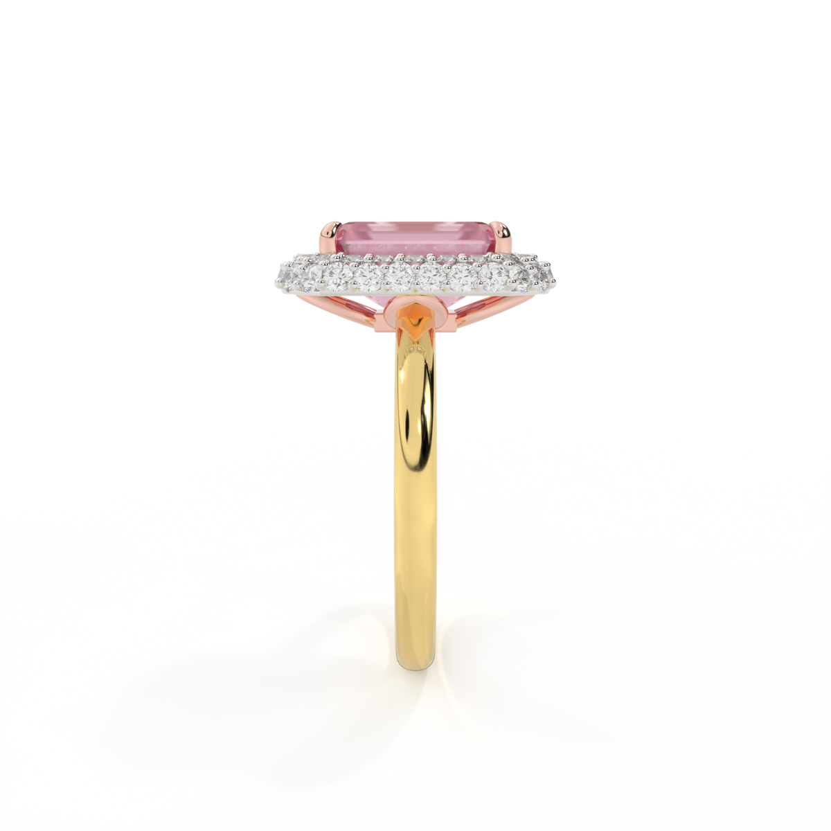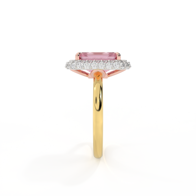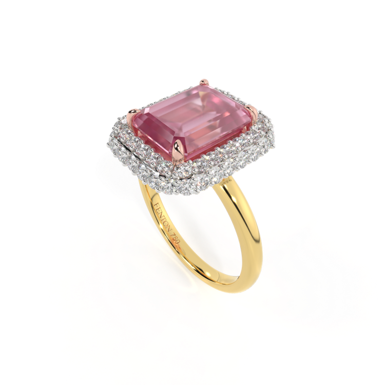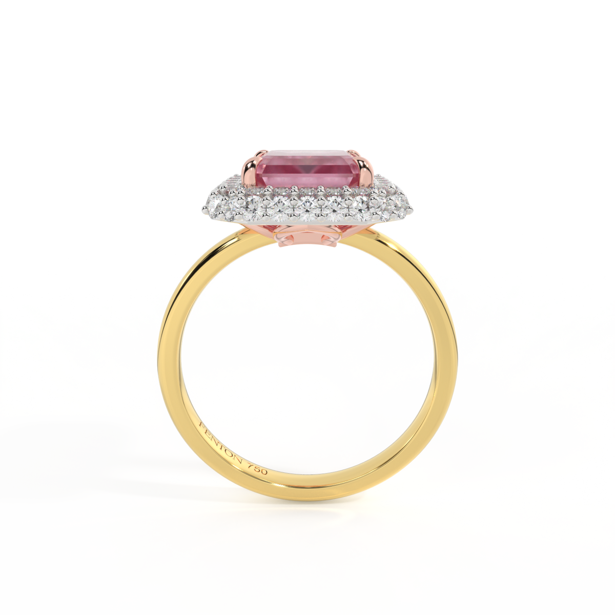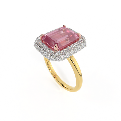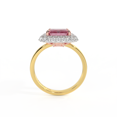 Vintage Emerald Pink Sapphire 18K Yellow Gold Ring