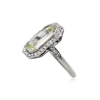 Art Deco Light Yellow Emerald cut Diamond Cluster Ring