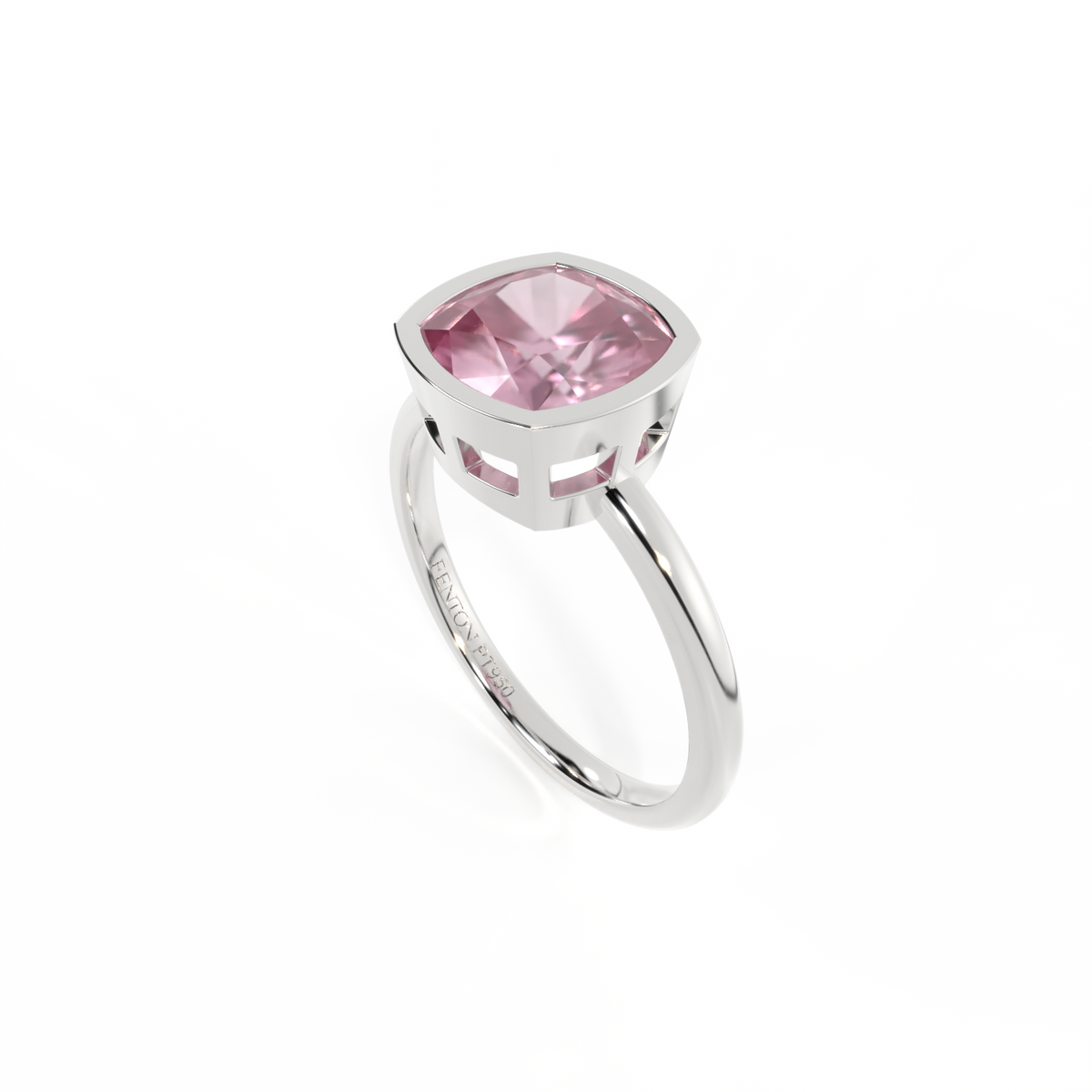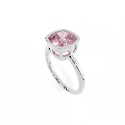 Minimalism meets modernism - the unique characteristics of this Cushion cut Pink Sapphire are given centre stage in The Bezel. A modern take on a solitaire, this style frames the 6mm Pink Sapphire in a secure custom made setting that's simple and striking at the same time.