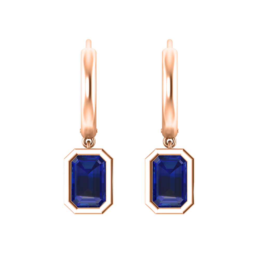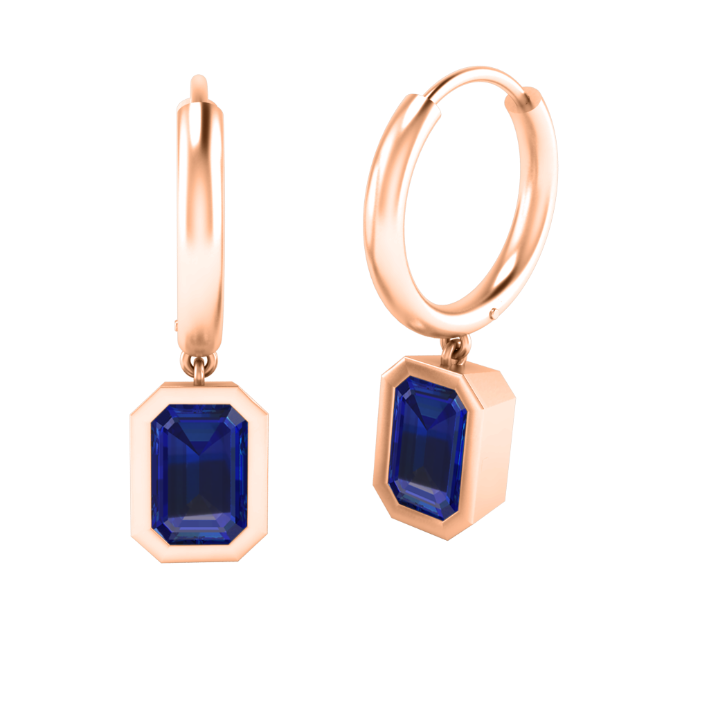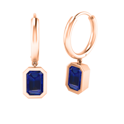 Bezel Drop Emerald Cut Blue Sapphire 18K Rose Gold Earrings