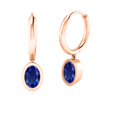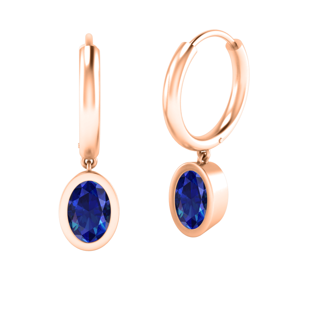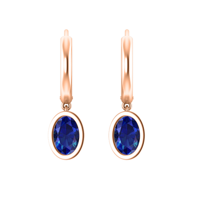Bezel Drop Oval Blue Sapphire 18K Rose Gold Earrings
