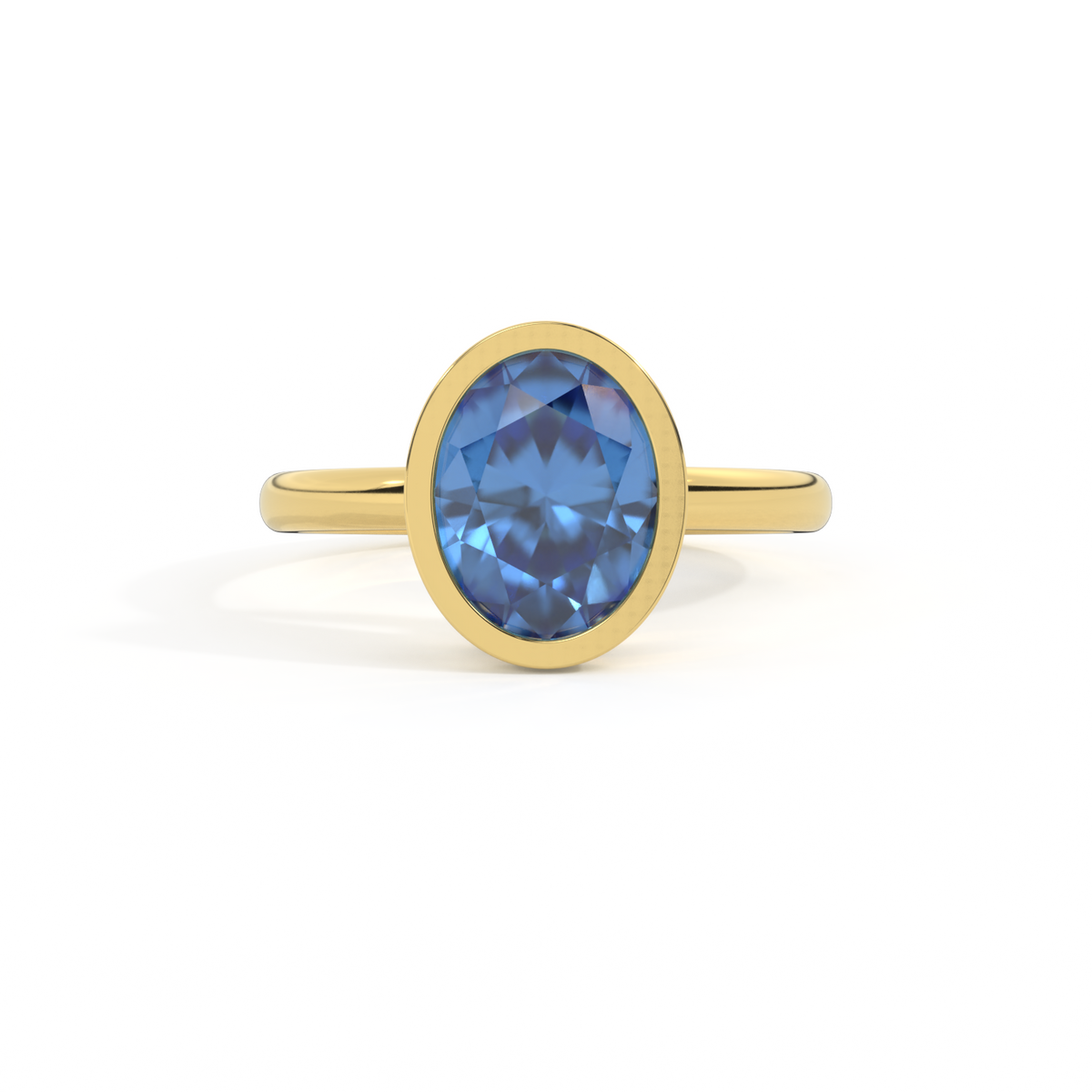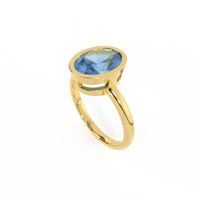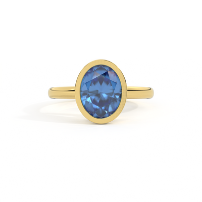 Bezel Oval Blue Sapphire 18K Yellow Gold Ring