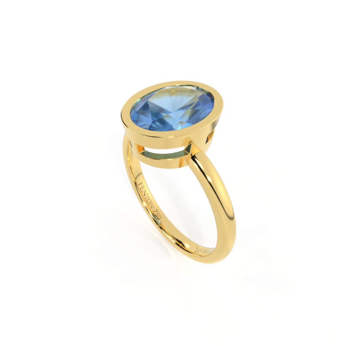 In a nod to the classic prong settings of ceremonial rings, open metalwork details are crafted in 18K Yellow Gold, giving The Bezel it’s unique Fenton twist.