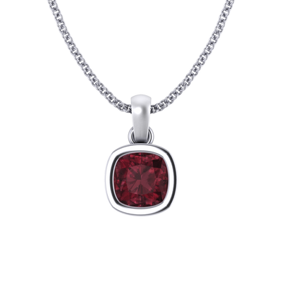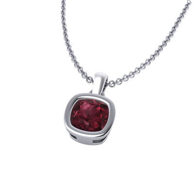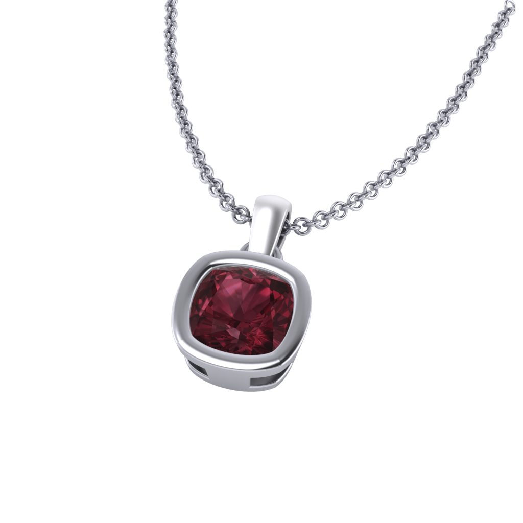 The Bezel Pendant Necklace combines minimalism with modern elegance. The Cushion cut Garnet pendant is bezel-set in a 18K White Gold rim and effortlessly balances on a matching chain.
