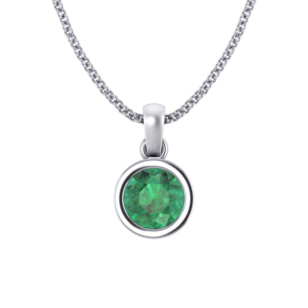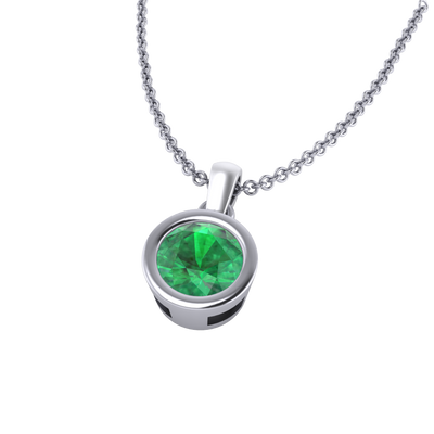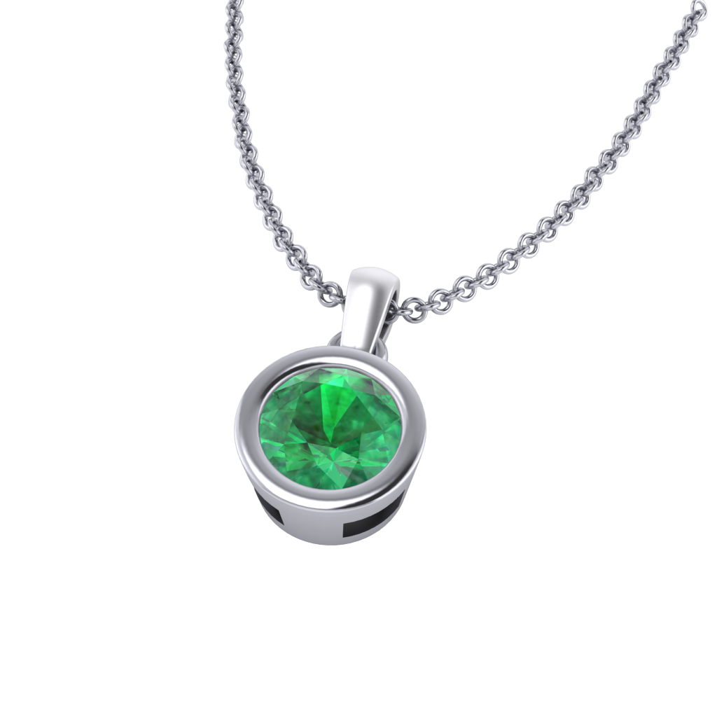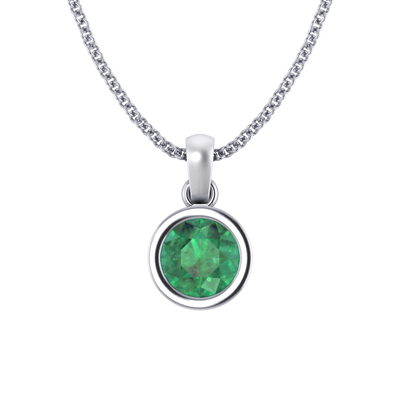 The Bezel Pendant Necklace combines minimalism with modern elegance. The Round cut Emerald pendant is bezel-set in a 18K White Gold rim and effortlessly balances on a matching chain.