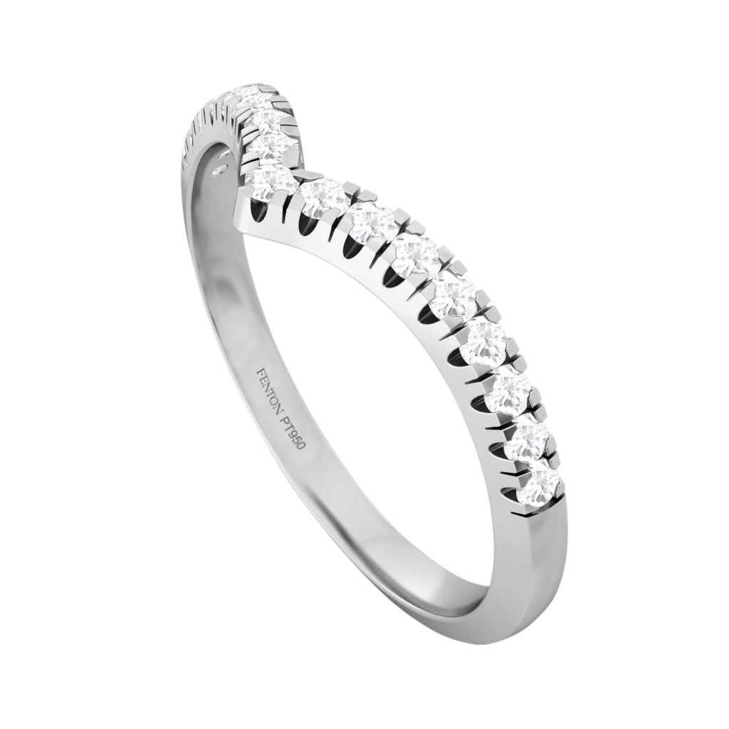 Fit your band neatly around the centre stone on your ring or create a unique stack with the Chevron. The Chevron is made from solid Platinum and has approximately 0.15cts of gemstones or diamonds.