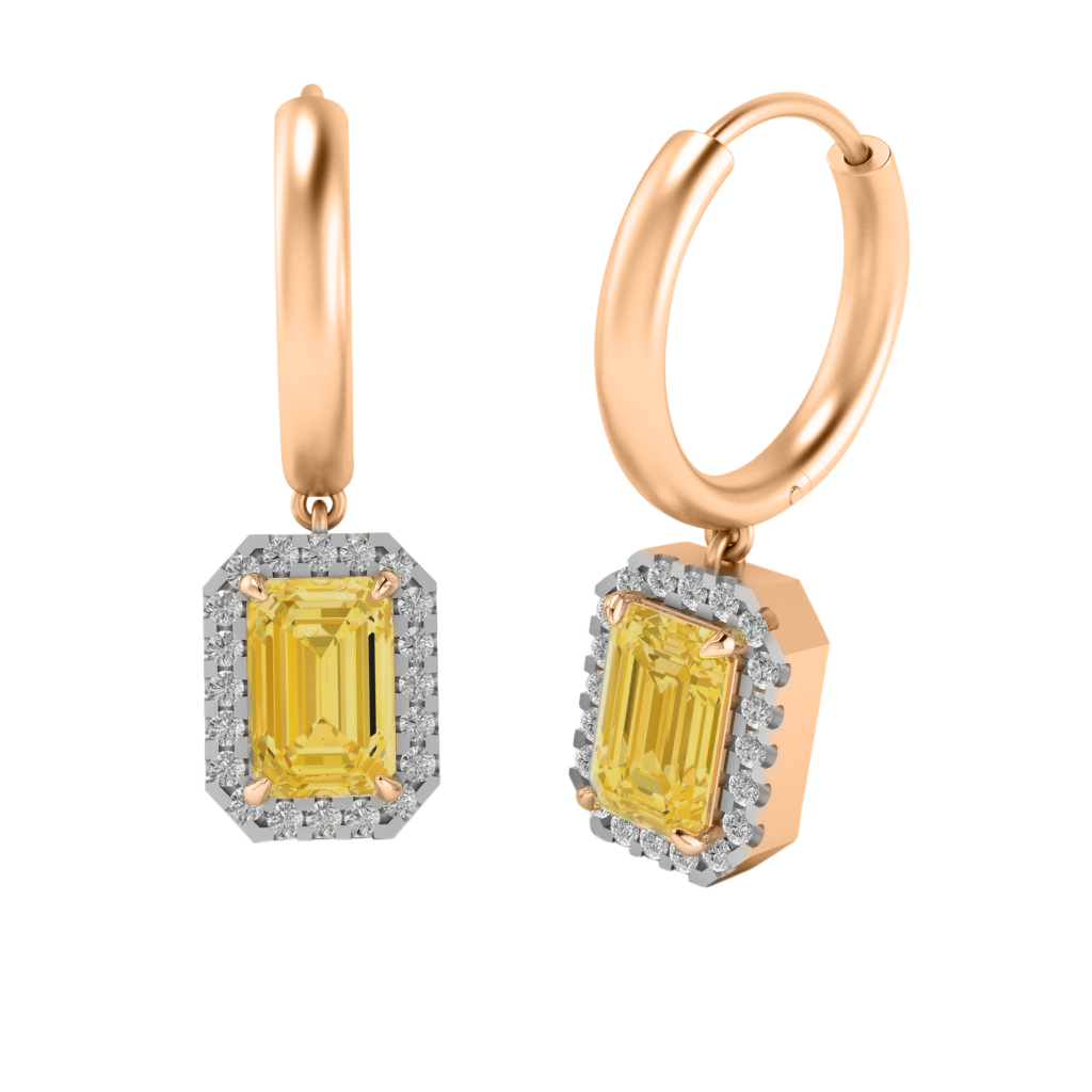 Classic Drop Emerald Yellow Sapphire 18K Rose Gold Earrings