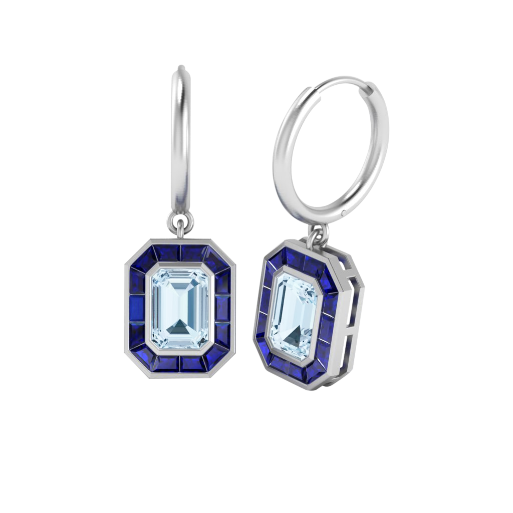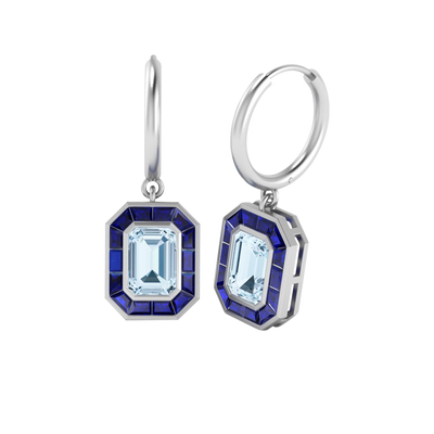 Deco Drop Emerald Aquamarine 18K White Gold Earrings