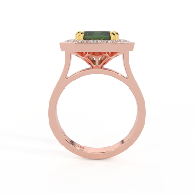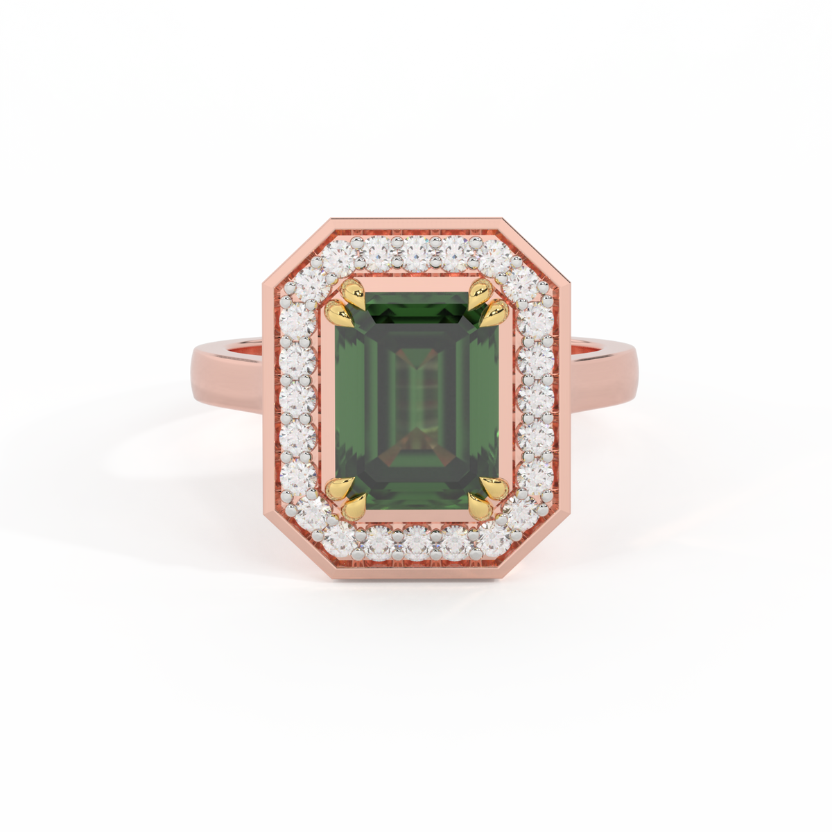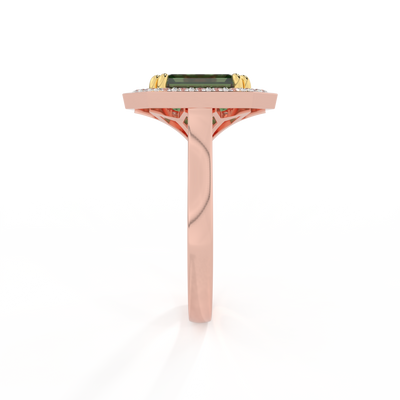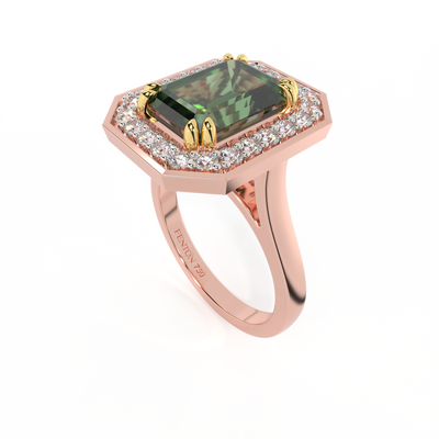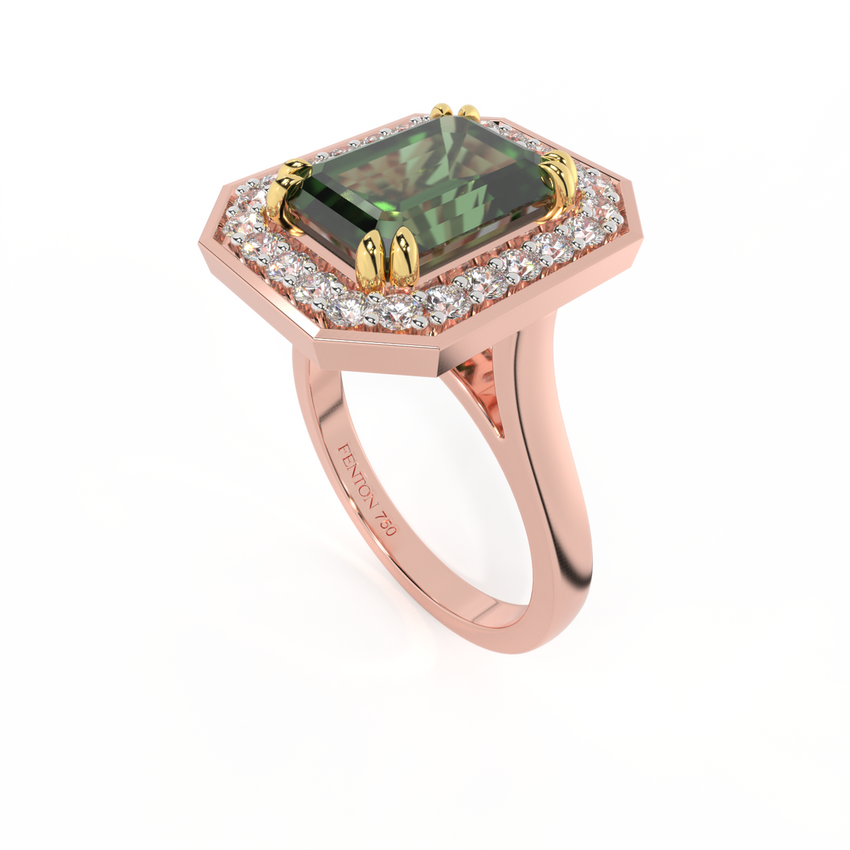 Deco Emerald Green Sapphire 18K Rose Gold Ring
