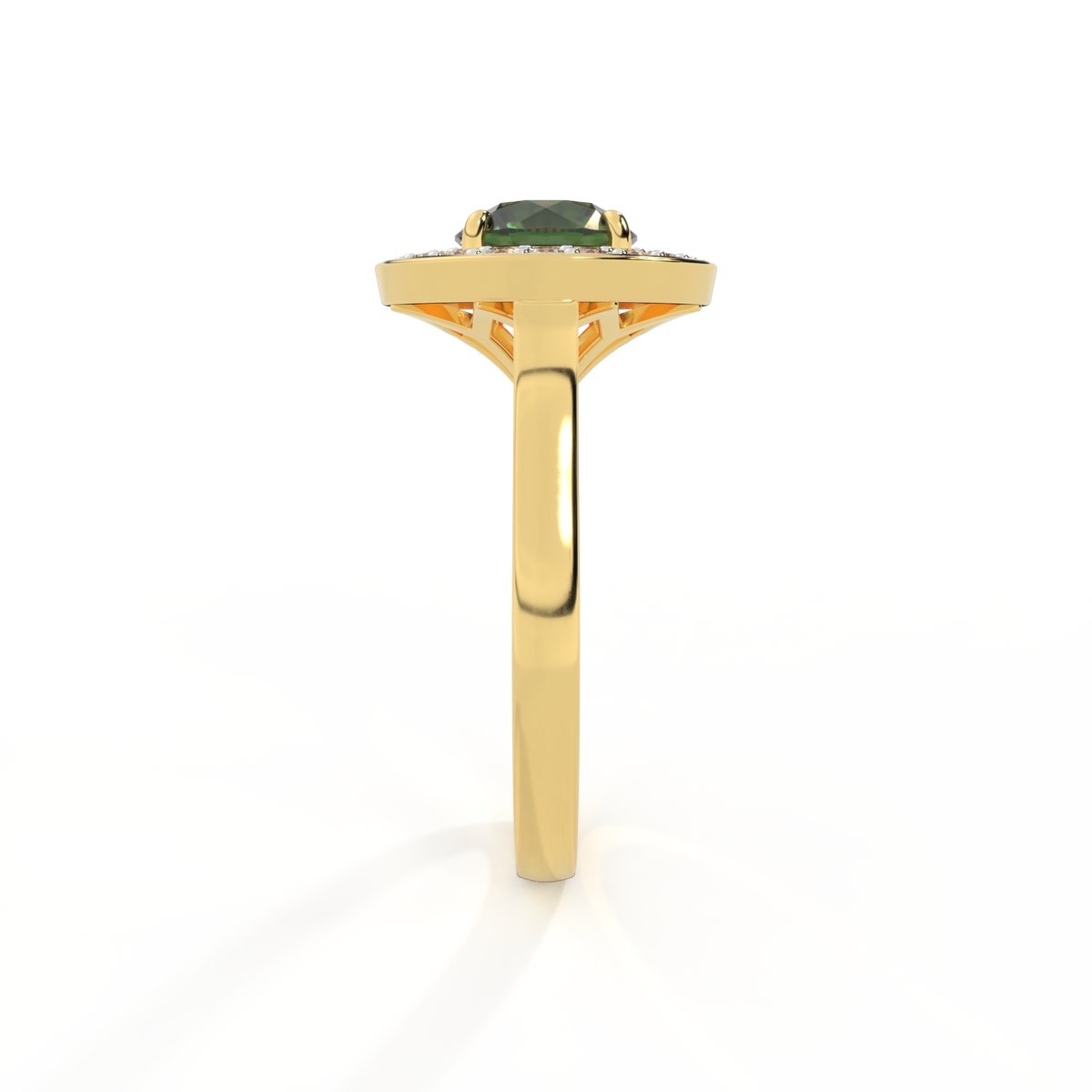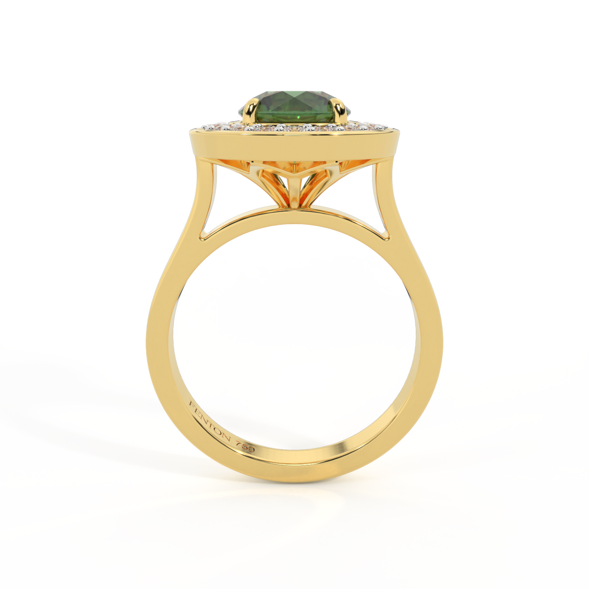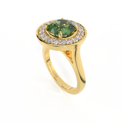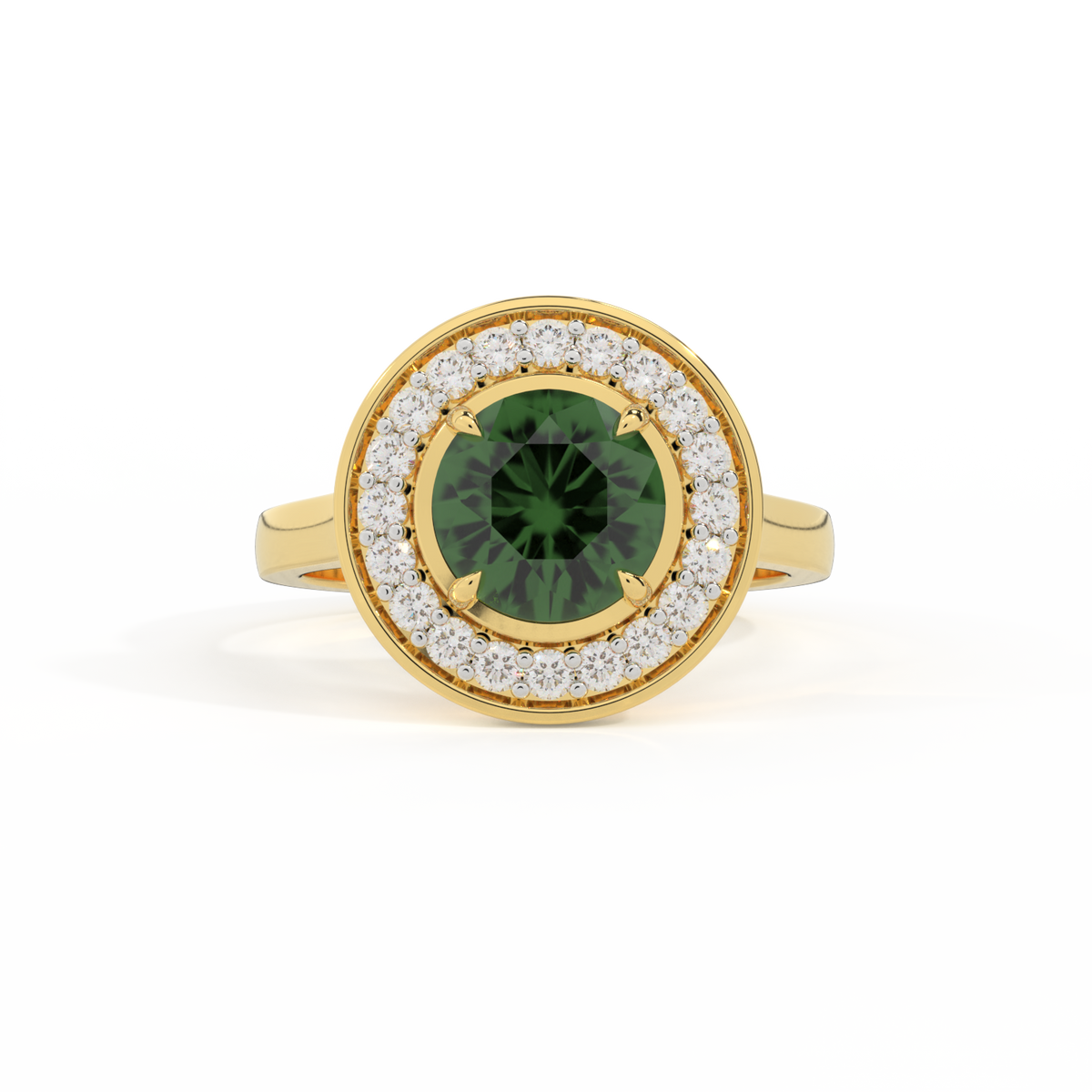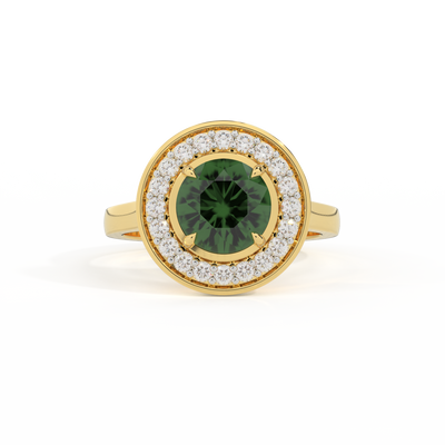 Deco Round Green Sapphire 18K Yellow Gold Ring