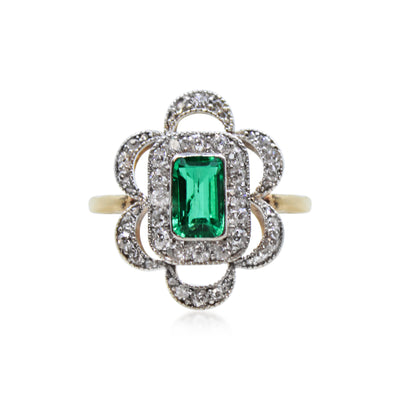 Antique Edwardian Emerald and Diamond Cluster Scallop Ring