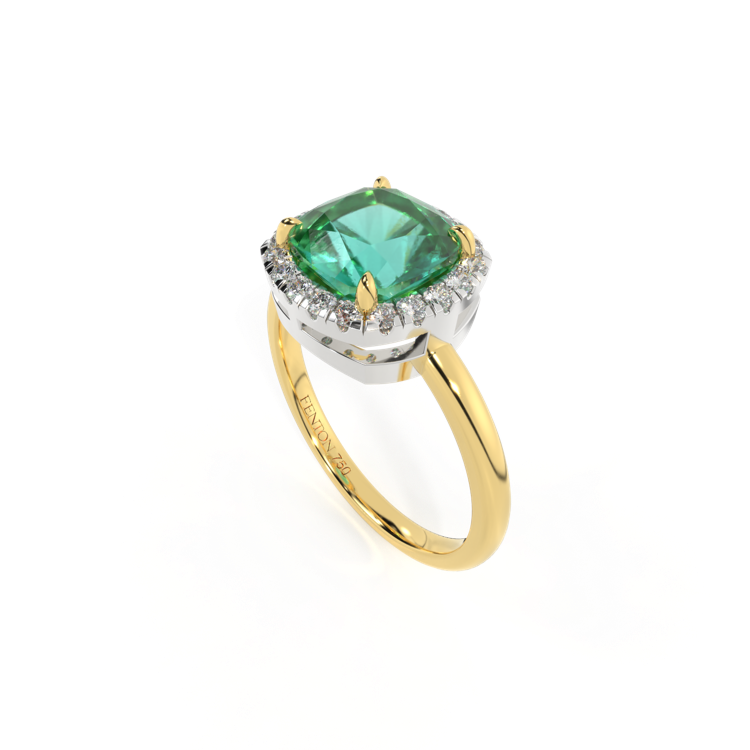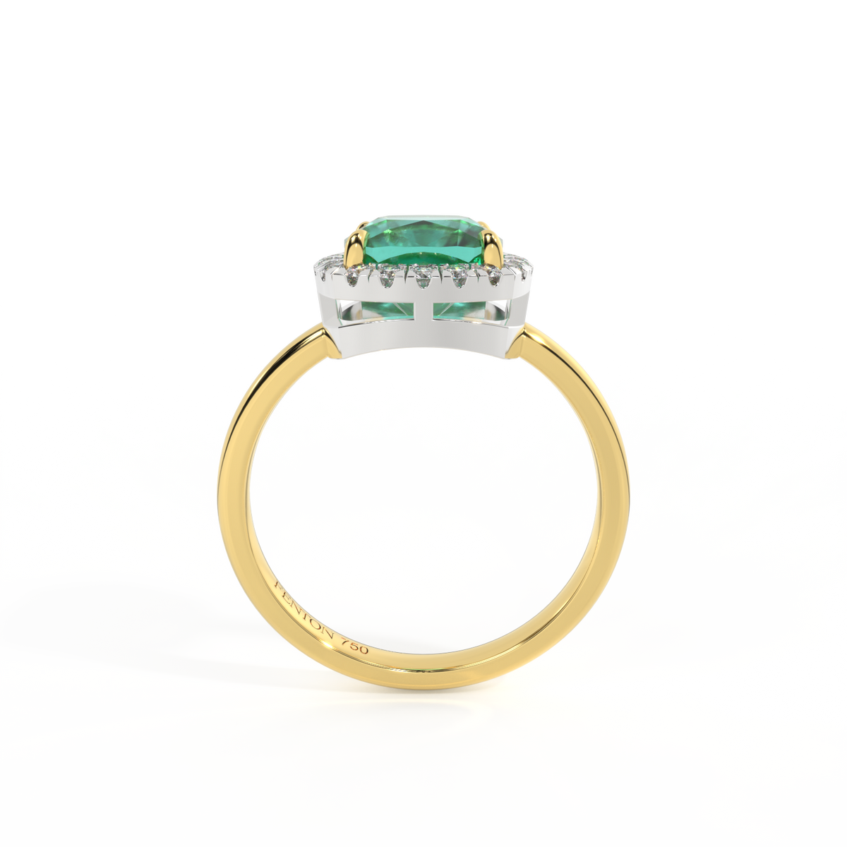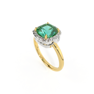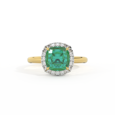 Halo Cushion Emerald 18K Yellow Gold Ring