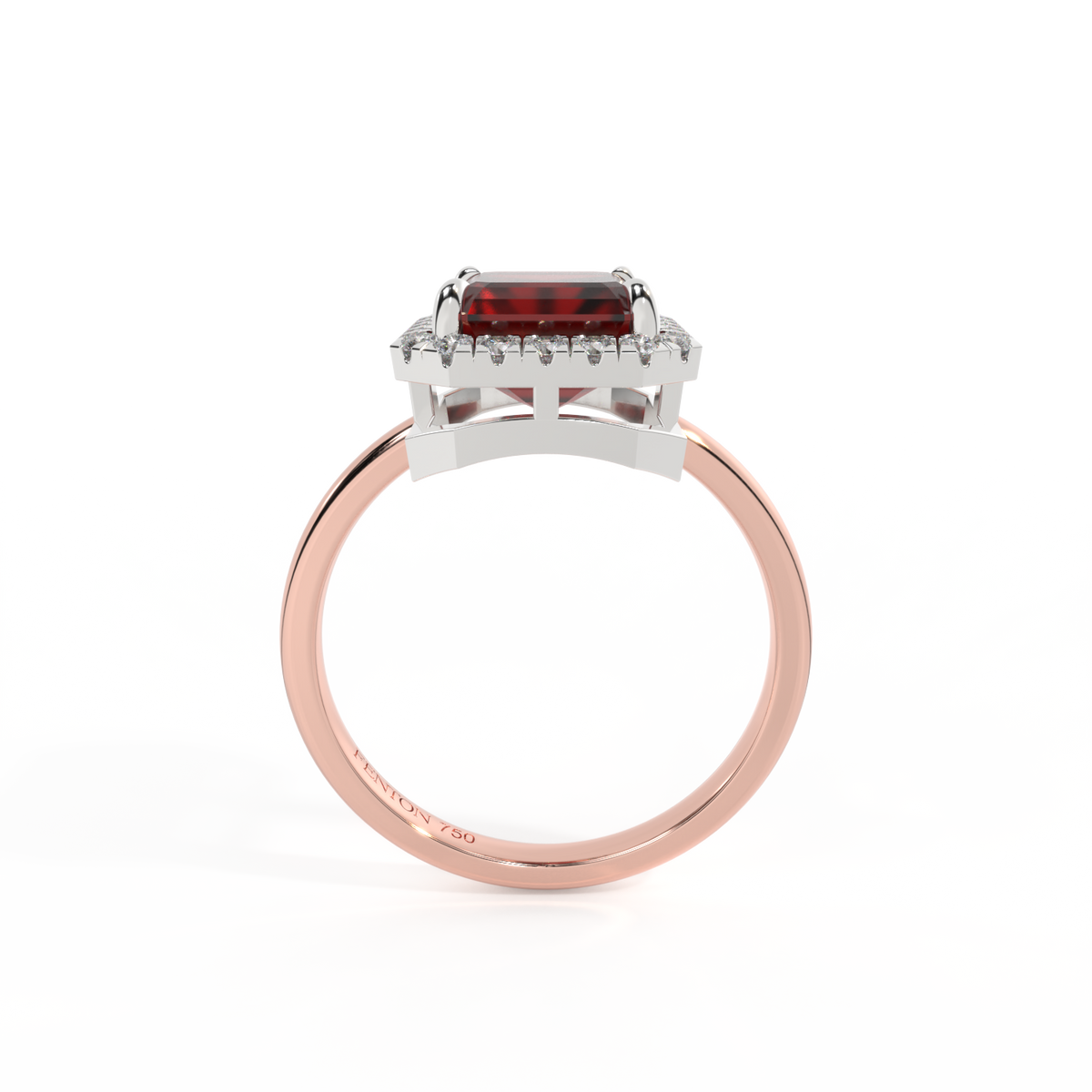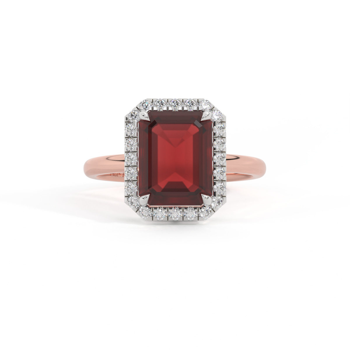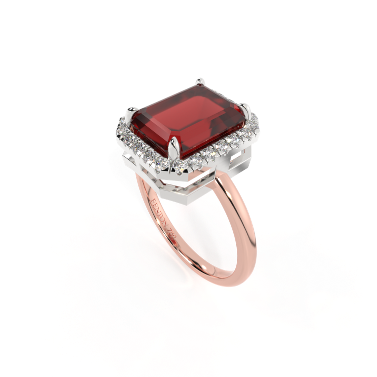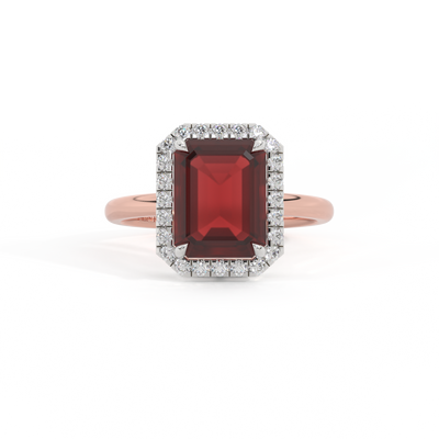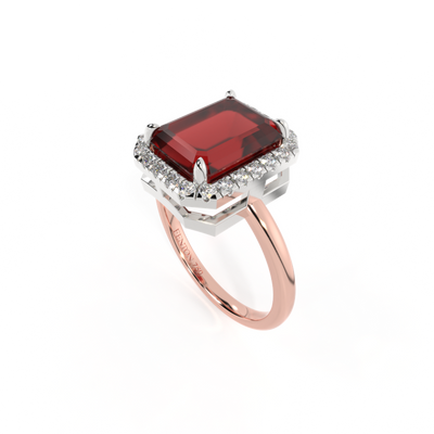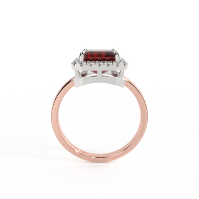 Halo Emerald Garnet 18K Rose Gold Ring