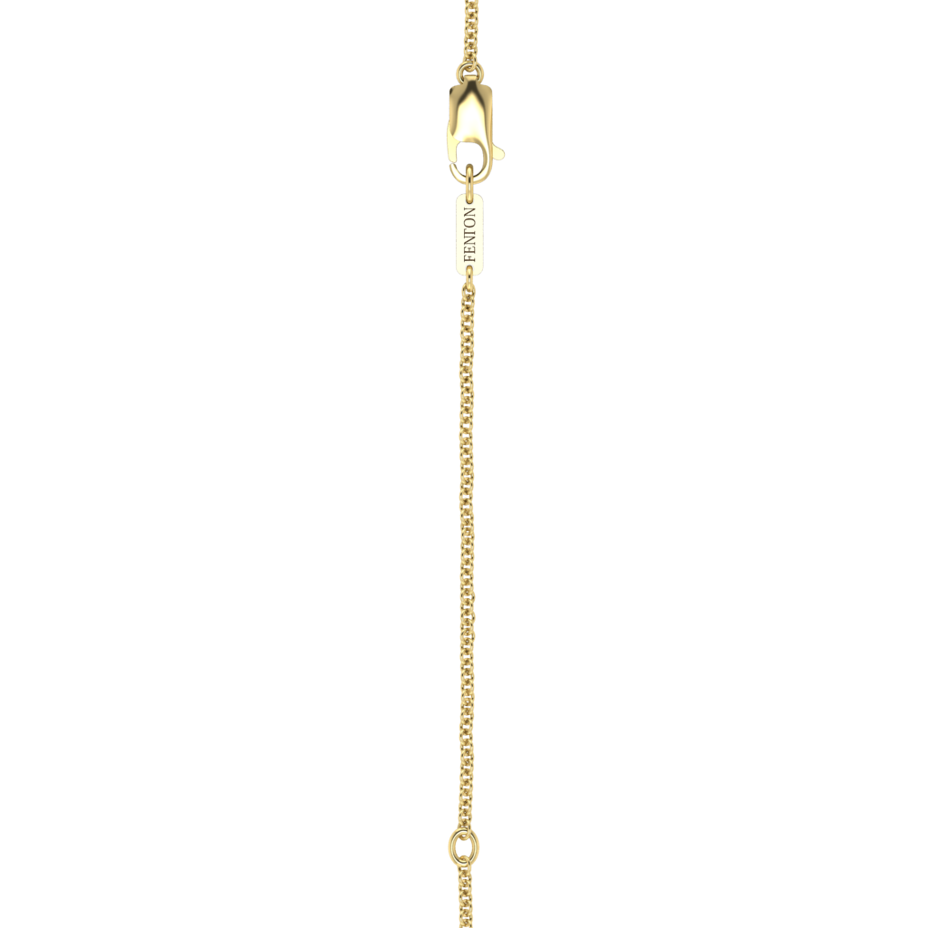The chain is made from solid, recycled 18K Yellow Gold and measures approximately 18 inches with a 16 inch catch loop to allow you to adjust to your preferred length and stack with other favourite jewellery pieces.