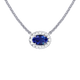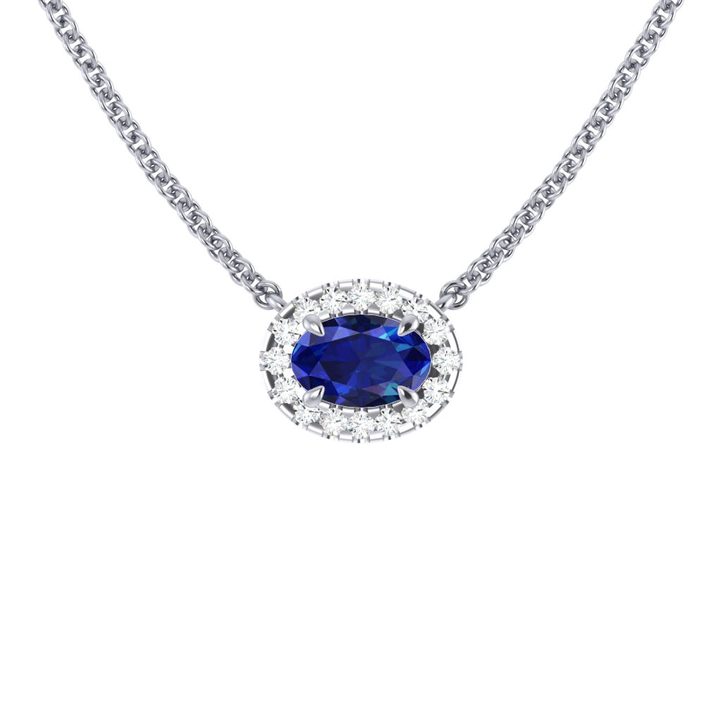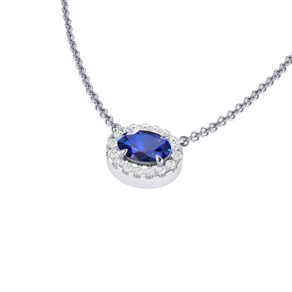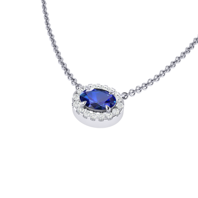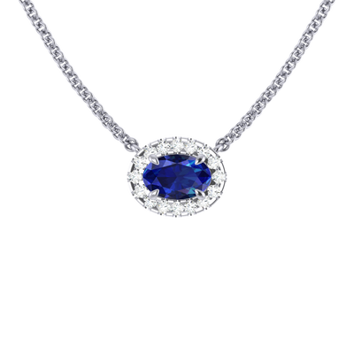 The Halo Necklace is the perfect gift for just about any occasion. A solid 18K White Gold chain securely holds a sparkling Oval cut Blue Sapphire at the centre of your necklace surrounded by a halo of round brilliant-cut pavé G/H colour and VS clarity diamonds. The Halo Necklace is the perfect combination of finest craftsmanship and understated elegance.