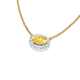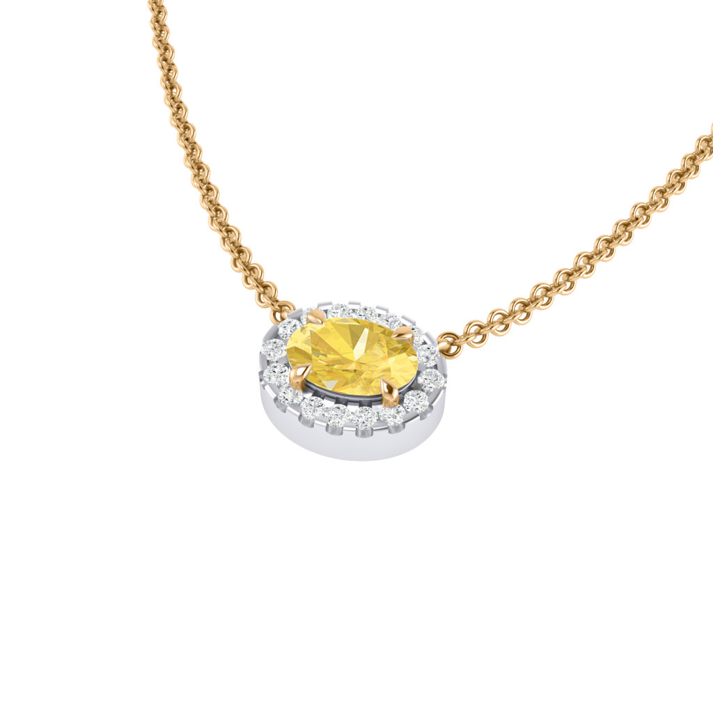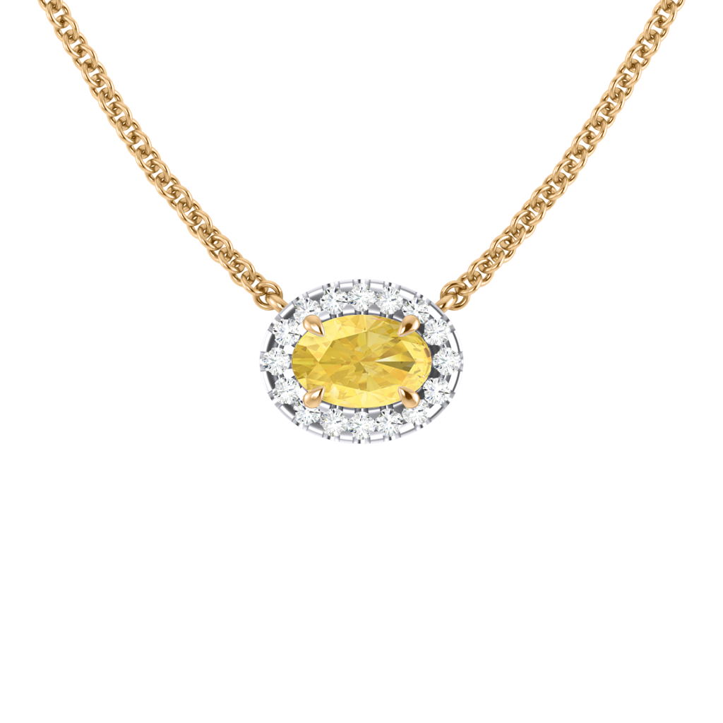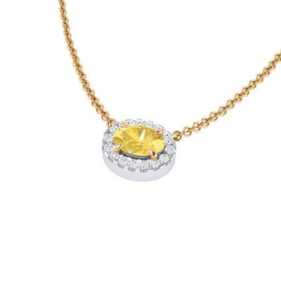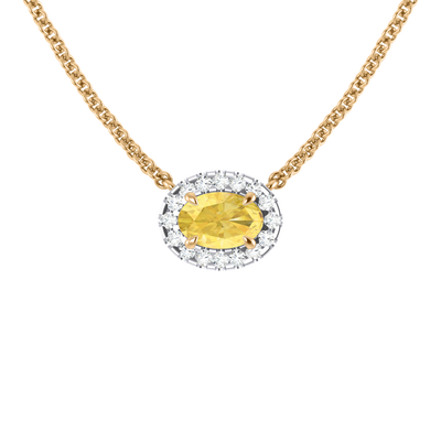 The Halo Necklace is the perfect gift for just about any occasion. A solid 18K Yellow Gold chain securely holds a sparkling Oval cut Yellow Sapphire at the centre of your necklace surrounded by a halo of round brilliant-cut pavé G/H colour and VS clarity diamonds. The Halo Necklace is the perfect combination of finest craftsmanship and understated elegance.