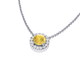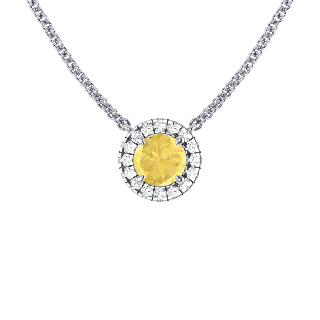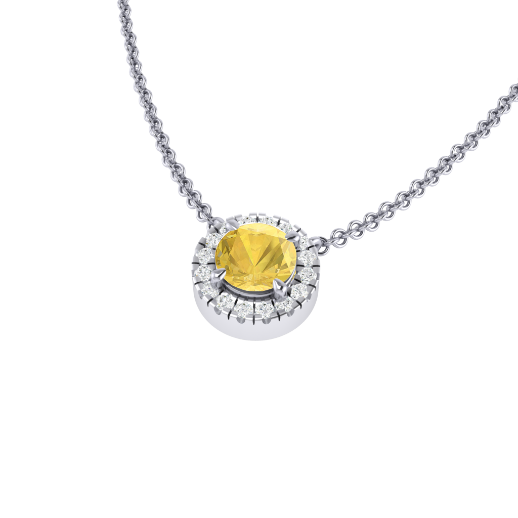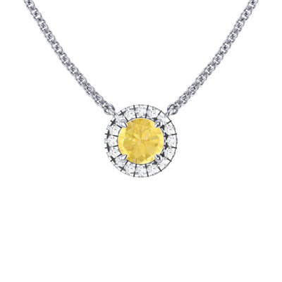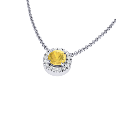 The Halo Necklace is the perfect gift for just about any occasion. A solid 18K White Gold chain securely holds a sparkling Round cut Yellow Sapphire at the centre of your necklace surrounded by a halo of round brilliant-cut pavé G/H colour and VS clarity diamonds. The Halo Necklace is the perfect combination of finest craftsmanship and understated elegance.