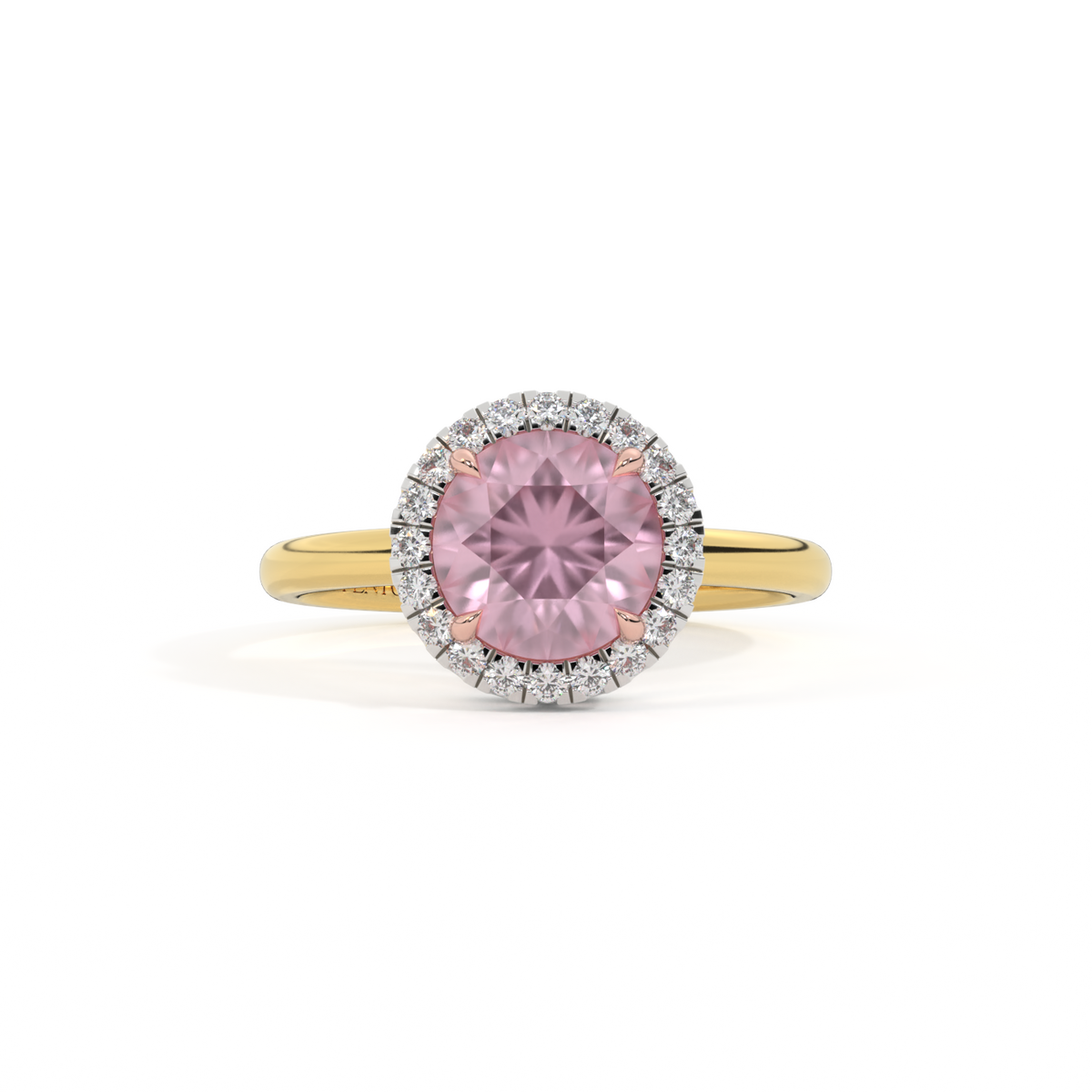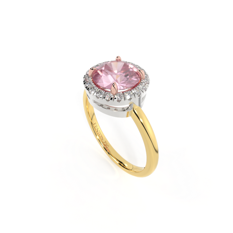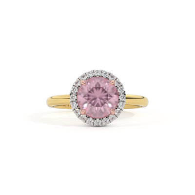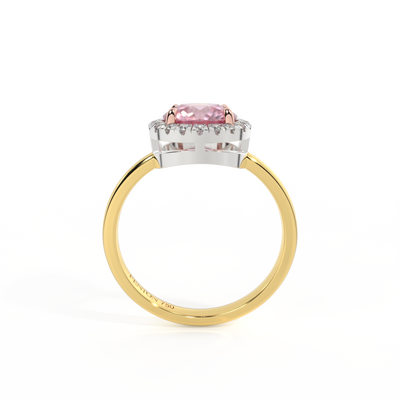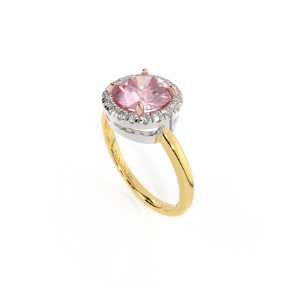 Halo Round Pink Sapphire 18K Yellow Gold Ring