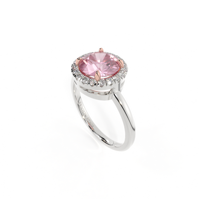 All of our rings are available in blue sapphire, ruby, emerald, pink sapphire, yellow sapphire and aquamarine. We offer three metals, 18K rose gold, 18K yellow gold and platinum. The centre stones are available in four cuts, round, cushion, oval and emerald cut and five sizes for each cut and style.