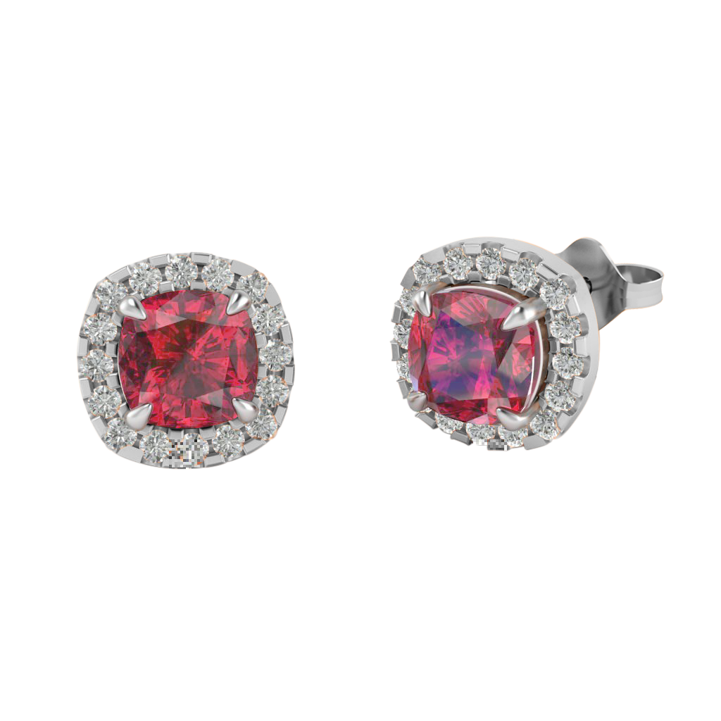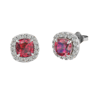 Halo Stud Cushion Ruby 18K White Gold Earrings