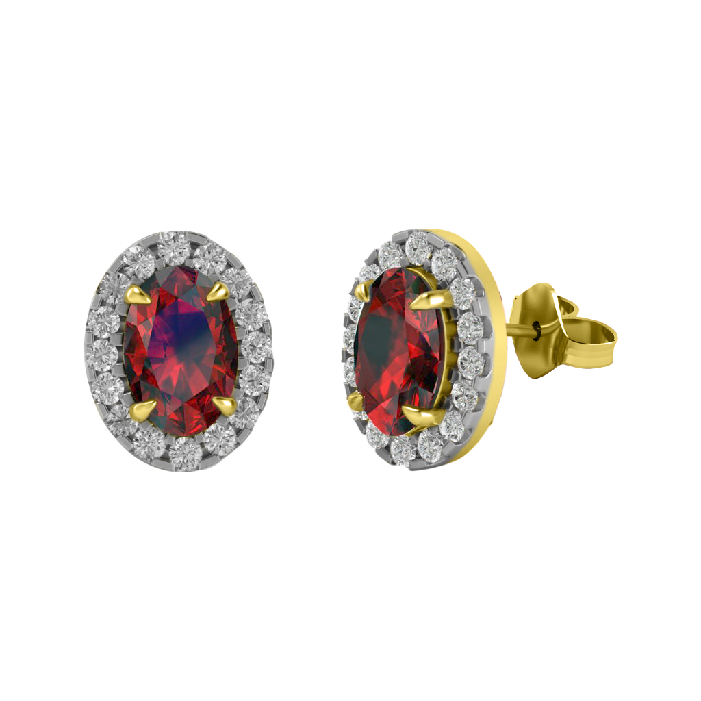 Halo Stud Oval Garnet 18K Yellow Gold Earrings