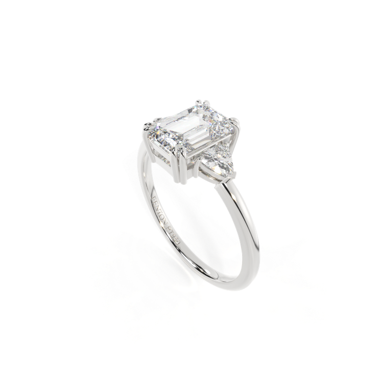 Proof that three isn't always a crowd, our Lab Grown Diamond Trilogy Ring unites a sparkling Lab Grown Diamond centre stone with two surrounding Diamond each set in a secure four single- or double claw setting and complimenting the exquisite sparkle of your Lab Grown Diamond stone. Your Emerald Lab Grown Diamond stone has a EF V/S quality rating and is set in a simple yet elegant gallery feeding smoothly into a sleek and simple Platinum band ranging from 1.90 - 2.20mm.