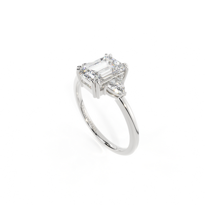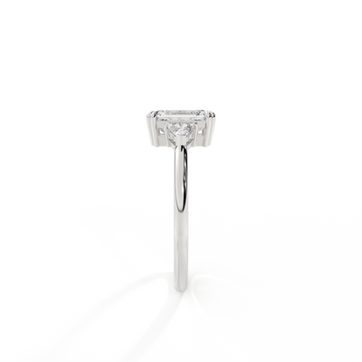 Lab Grown Diamond Trilogy Emerald Cut Diamond Platinum Ring