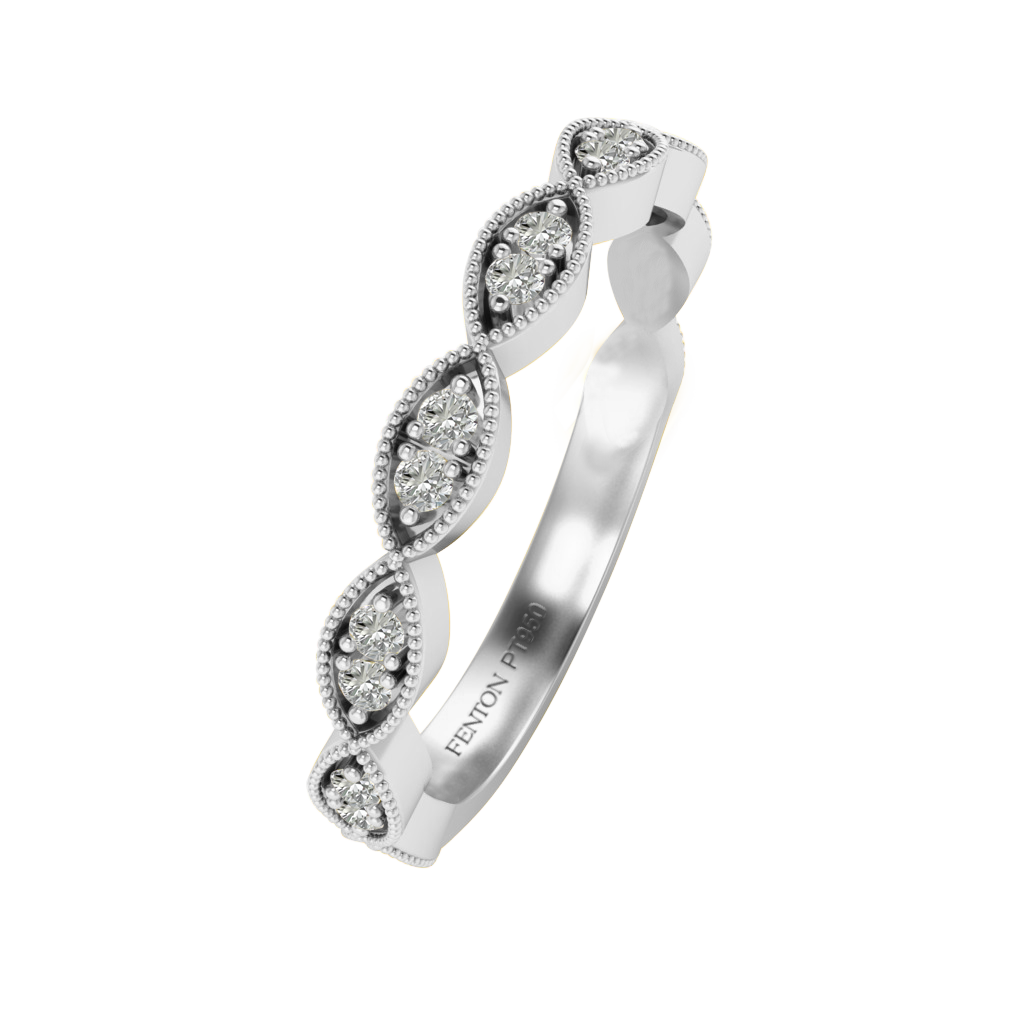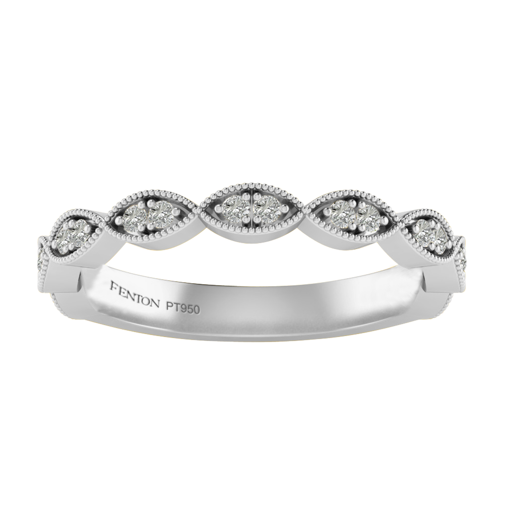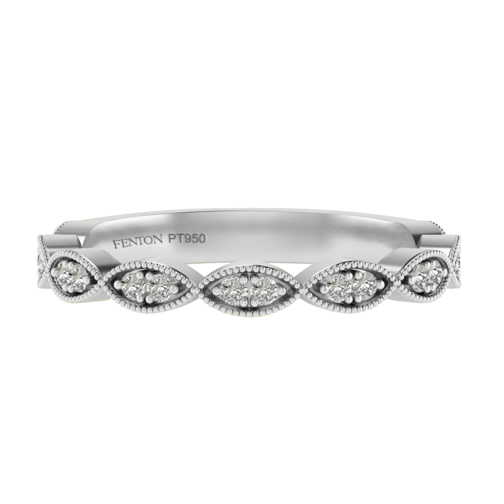Inspired by the laurel wreaths worn by Roman victors, the Laurel band is a contemporary and playful jewellery choice to stand out from the crowd. It's a beautiful ring worn solo or as a classic wedding ring, stacked with your engagement ring. The Laurel band is delicately crafted from solid Platinum holding approximately 0.15cts of round-cut Diamond stones. For extra comfort and durability, your stones cover 3/4 of your your overall band.