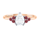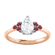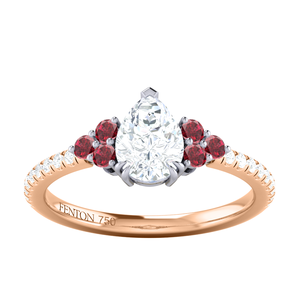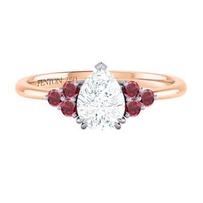 Naturally Mined Diamond Trefoil Pear Cut Diamond and Ruby 18k Rose Gold Ring