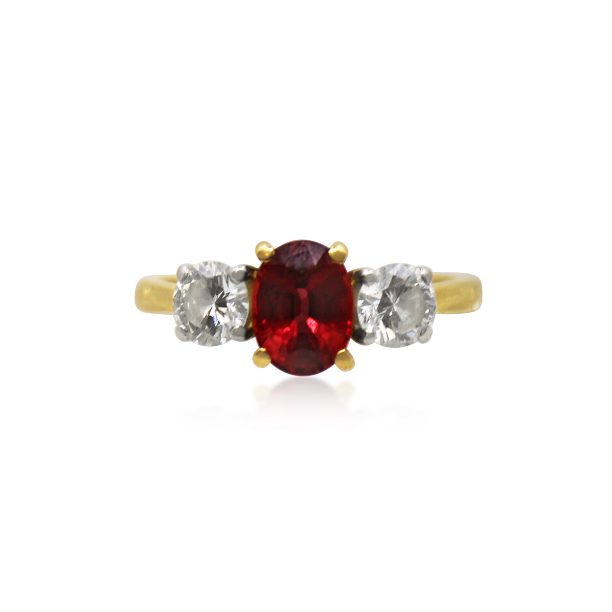 Oval Ruby and Diamond 3 Stone Ring