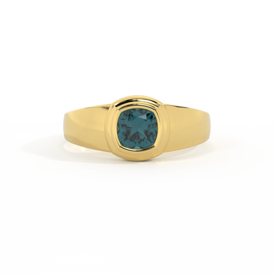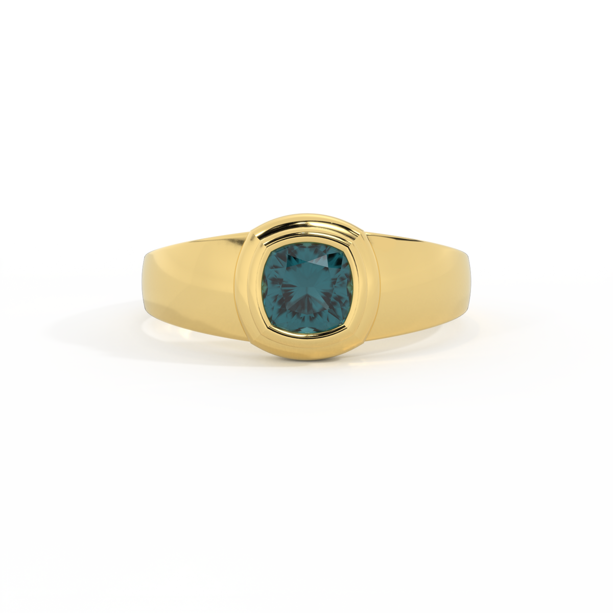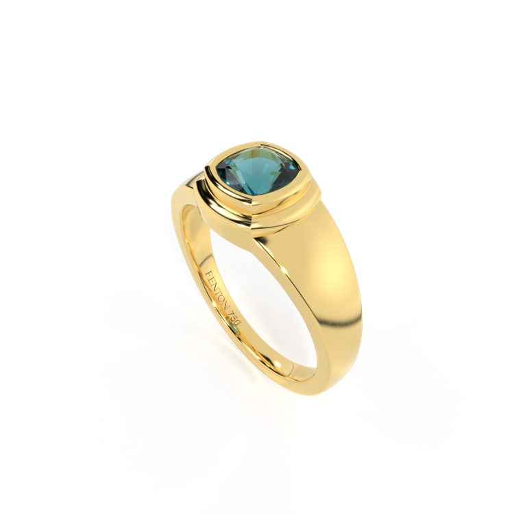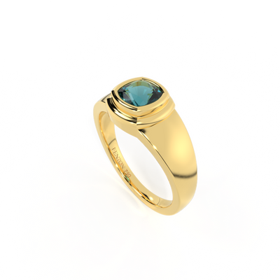 Signet Cushion Teal Sapphire 18K Yellow Gold Ring