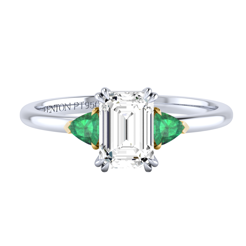 Lab Grown Solar Diamond Trilogy Emerald Cut Diamond and Emerald 18k Yellow Gold Ring