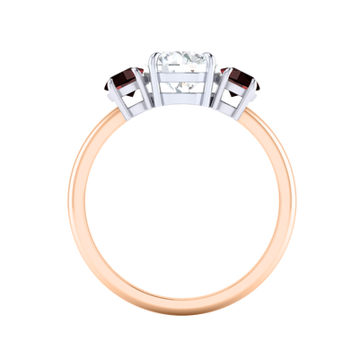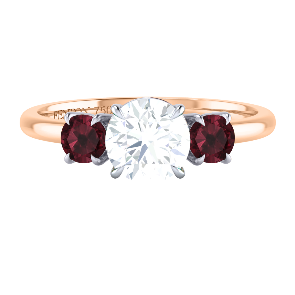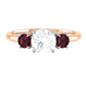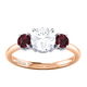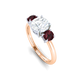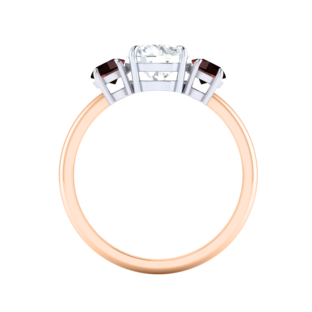 Lab Grown Solar Diamond Trilogy Round Cut Diamond and Garnet 18k Rose Gold Ring