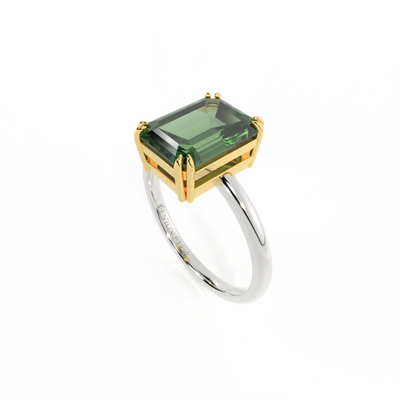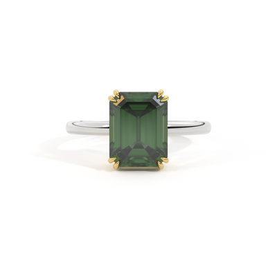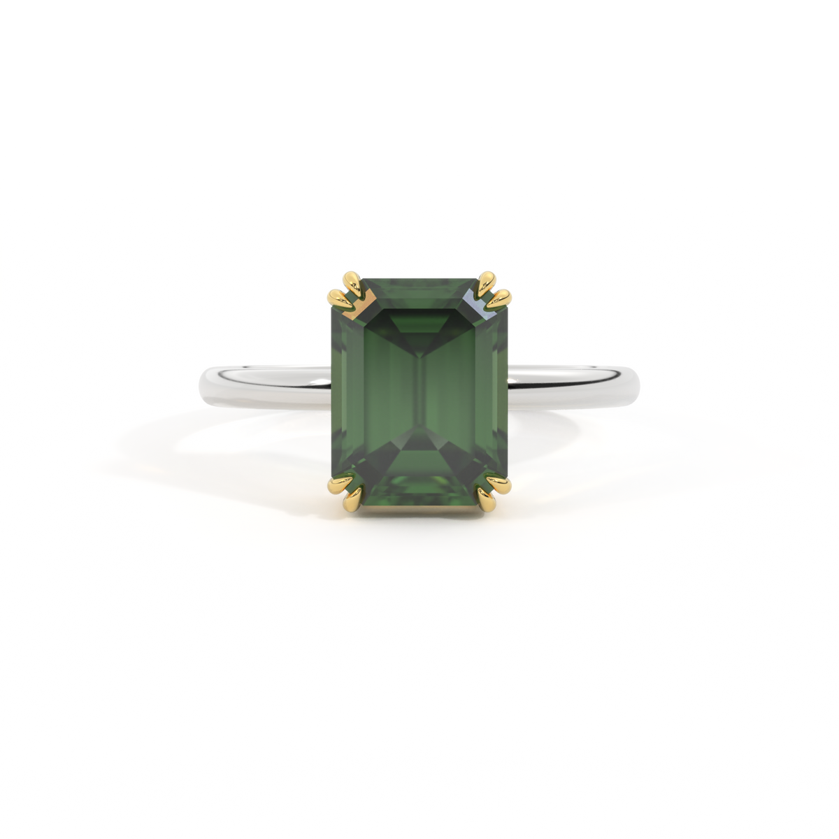 All of our rings are available in blue sapphire, green sapphire, emerald, pink sapphire, yellow sapphire, garnet and aquamarine. We offer three metals, 18K rose gold, 18K yellow gold and platinum. The centre stones are available in four cuts, round, cushion, oval and emerald cut and five sizes for each cut and style.