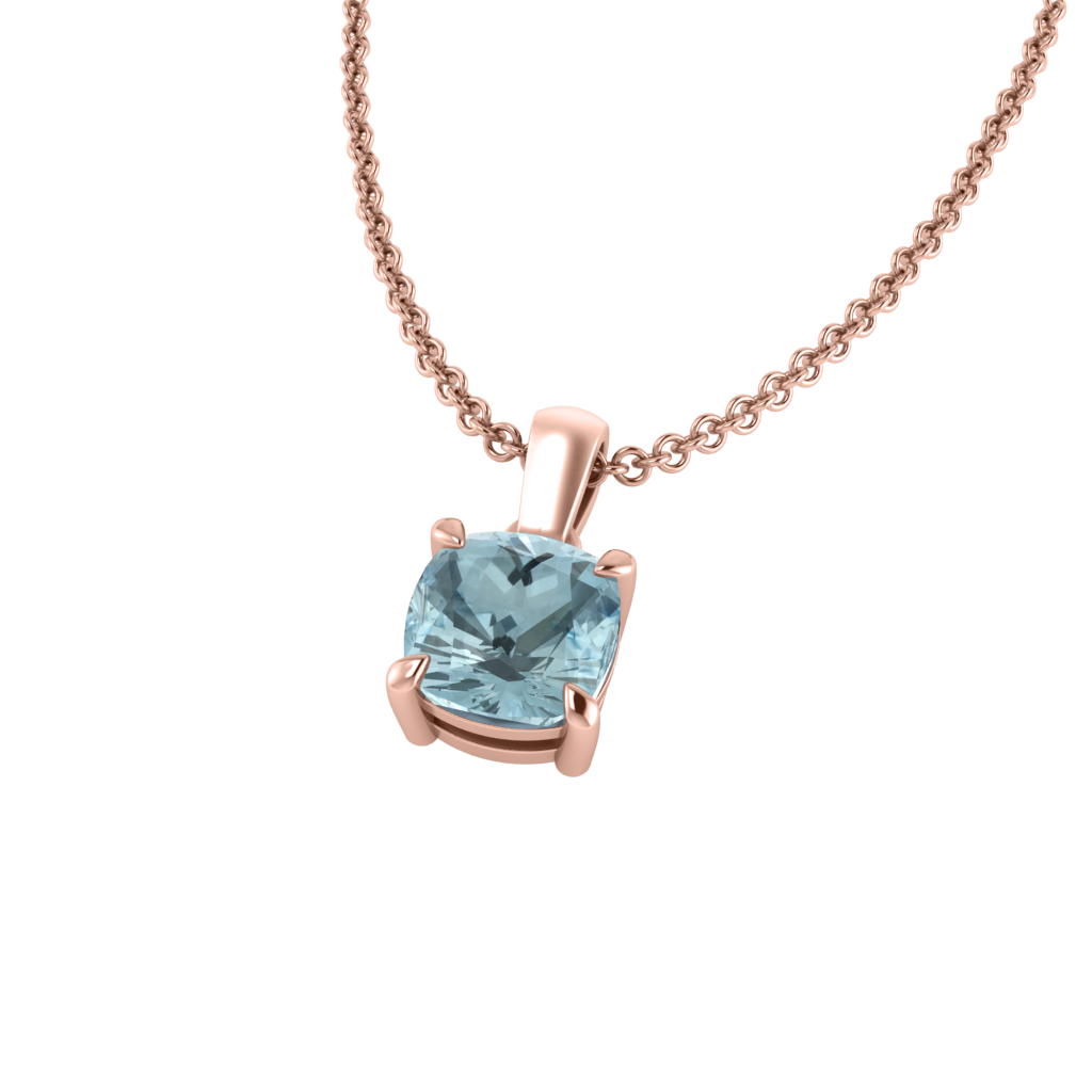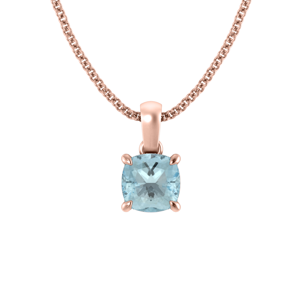 The Solitaire Pendant Necklace is a sparkling favourite, combining timelessness with a colourful twist. The Cushion cut Aquamarine pendant elegantly swings on a solid, recycled 18K Rose Gold chain measuring 18 inches and adjustable to a shorter 16 inch length.