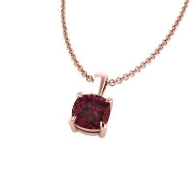 The Solitaire Pendant Necklace is a sparkling favourite, combining timelessness with a colourful twist. The Cushion cut Garnet pendant elegantly swings on a solid, recycled 18K Rose Gold chain measuring 18 inches and adjustable to a shorter 16 inch length.