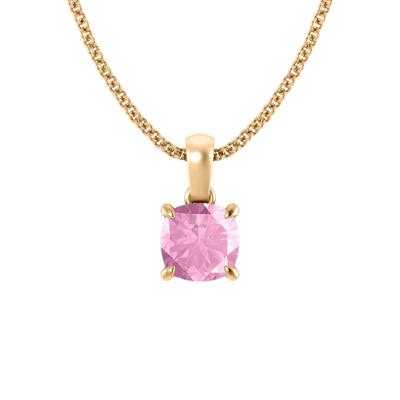 The Solitaire Pendant Necklace is a sparkling favourite, combining timelessness with a colourful twist. The Cushion cut Pink Sapphire pendant elegantly swings on a solid, recycled 18K Yellow Gold chain measuring 18 inches and adjustable to a shorter 16 inch length.