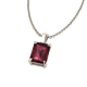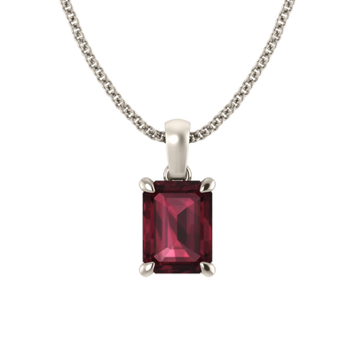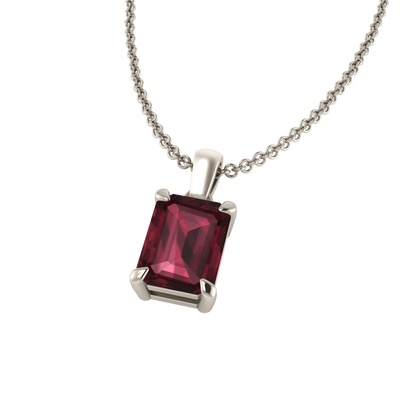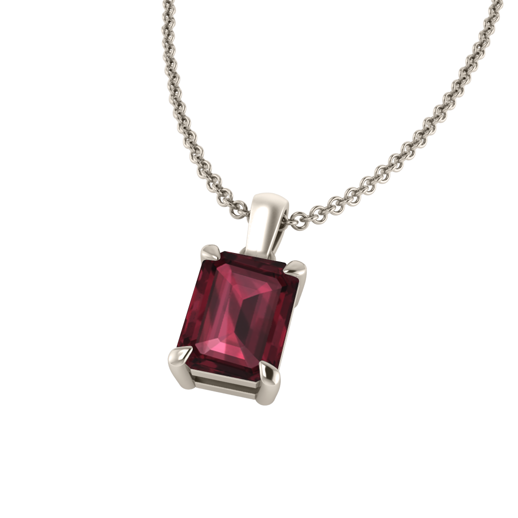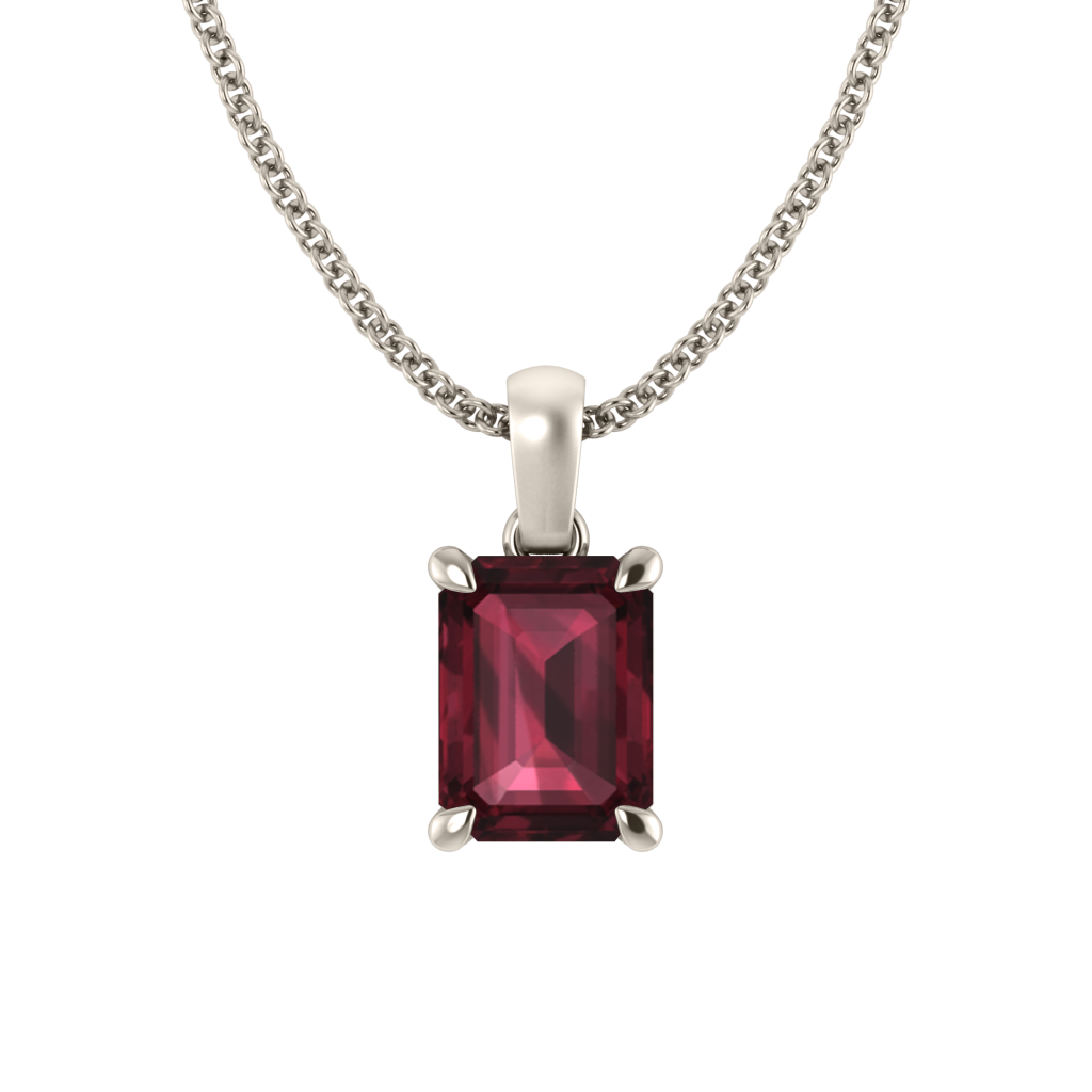 The Solitaire Pendant Necklace is a sparkling favourite, combining timelessness with a colourful twist. The Emerald cut Garnet pendant elegantly swings on a solid, recycled 18K White Gold chain measuring 18 inches and adjustable to a shorter 16 inch length.