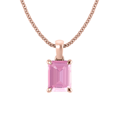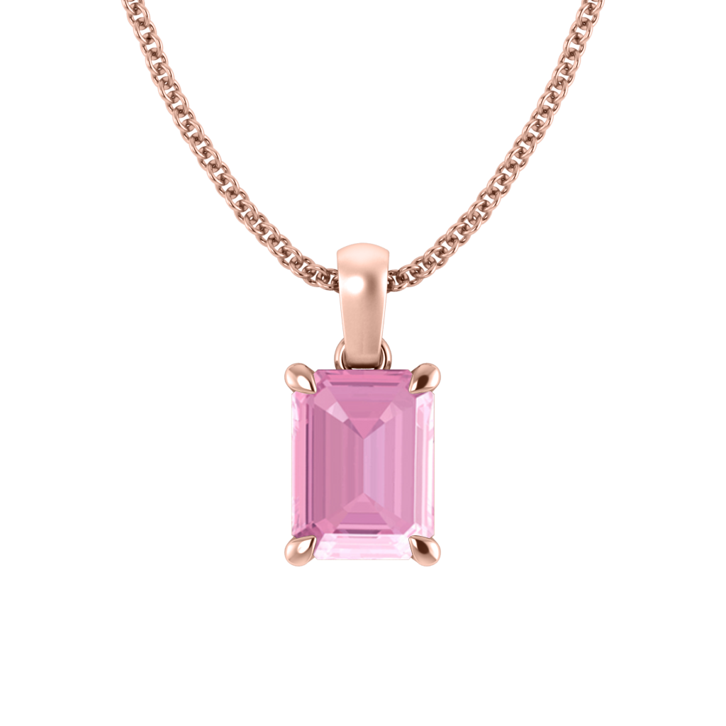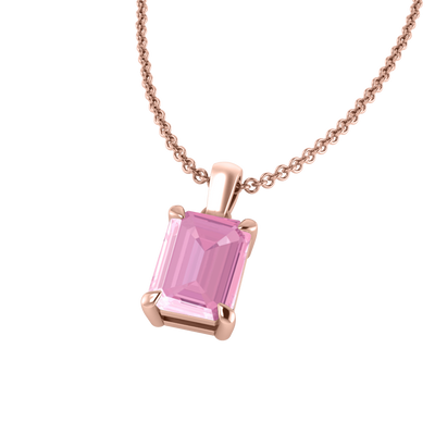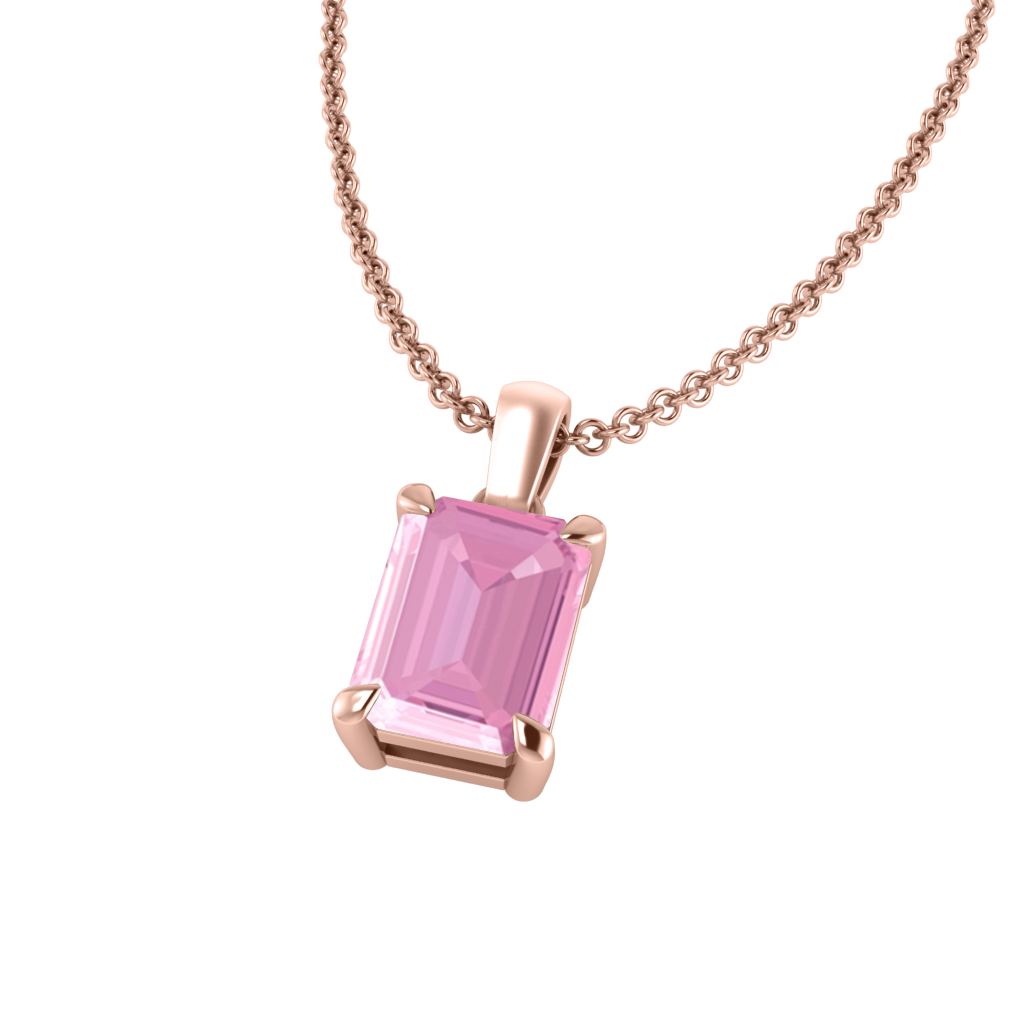 The Solitaire Pendant Necklace is a sparkling favourite, combining timelessness with a colourful twist. The Emerald cut Pink Sapphire pendant elegantly swings on a solid, recycled 18K Rose Gold chain measuring 18 inches and adjustable to a shorter 16 inch length.