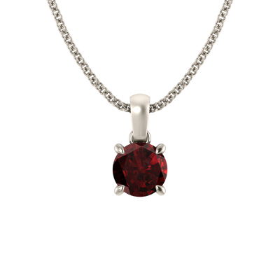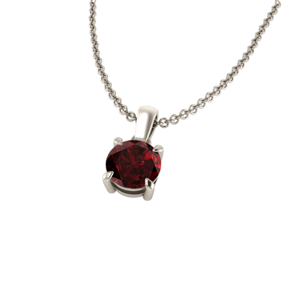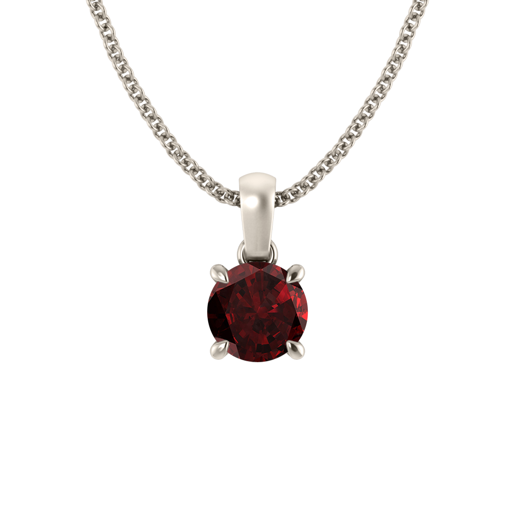 The Solitaire Pendant Necklace is a sparkling favourite, combining timelessness with a colourful twist. The Round cut Garnet pendant elegantly swings on a solid, recycled 18K White Gold chain measuring 18 inches and adjustable to a shorter 16 inch length.